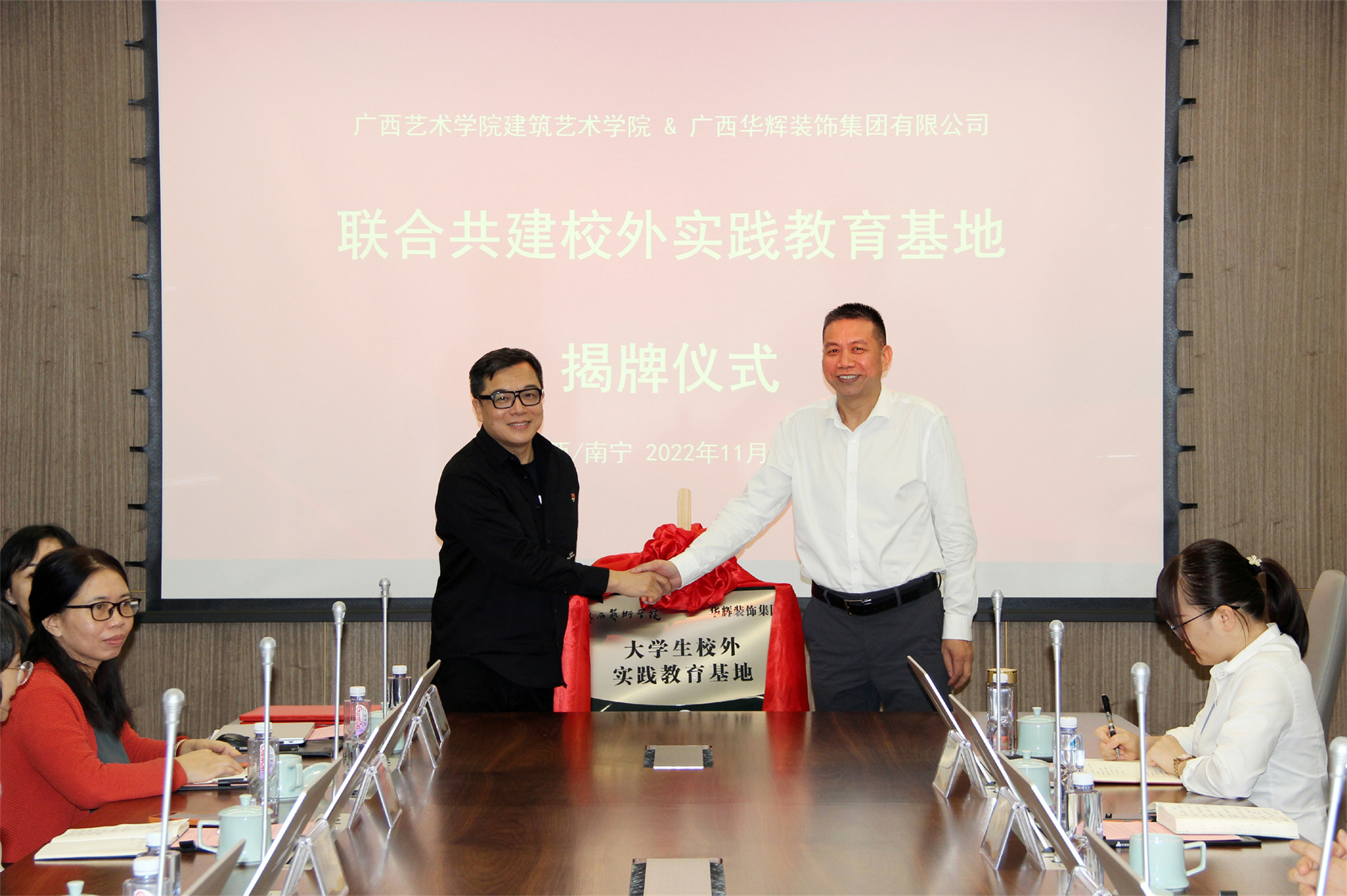 2022年11月28日,广西艺术学院建筑艺术学院党委与广西太阳成tyc7111cc官网装饰集团有限公司党支部,开展“学习贯彻党的二十大精神”联合主题党日暨党建共建仪式;同时,广西艺术学院建筑艺术学院与广西太阳成tyc7111cc官网装饰集团有限公司,举行了“联合共建校外实践教育基地”揭牌仪式。