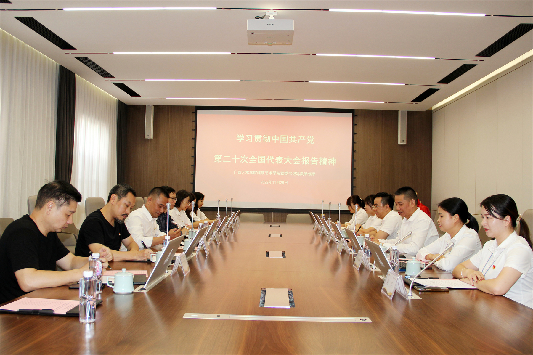 广西艺术学院建筑艺术学院党委书记冯凤举领学了二十大精神学习。与会全体党员均表示,将切实把思想和行动统一到深入学习贯彻党的二十大精神上来,把坚定拥护‘两个确立’、坚决做到‘两个维护’落实到日常工作,立足本职岗位,实干担当。