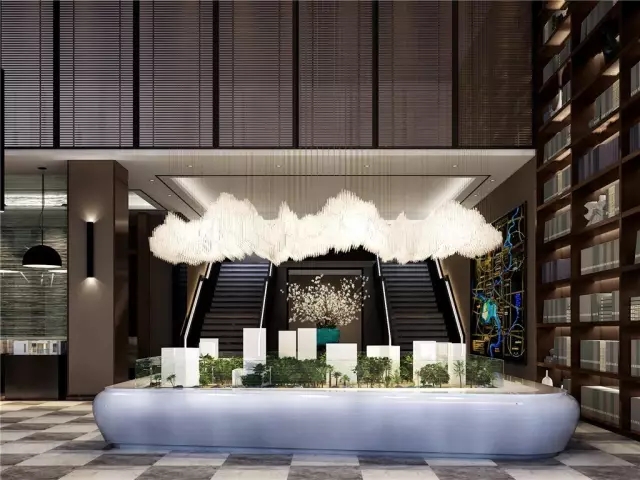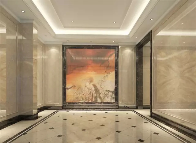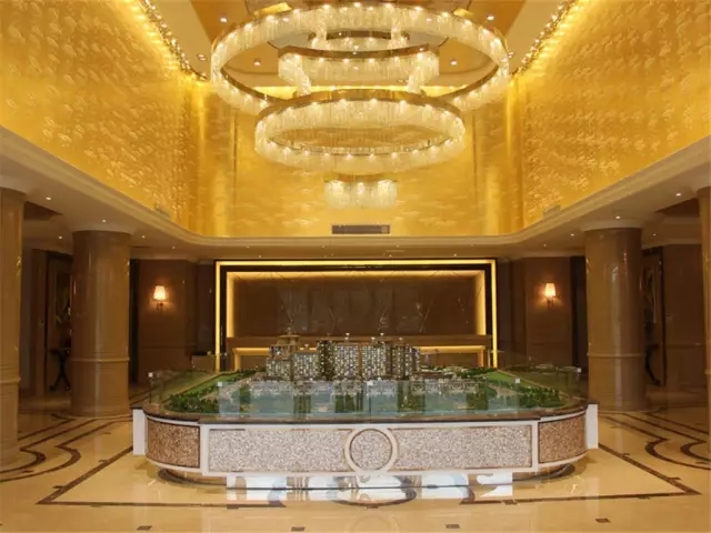 〖施工工艺〗售楼部销售大厅,采用铝格栅吊顶,即获得了开放的视野,又实现了通风、透气,线条明快整齐,层次分明。皮革硬包、不锈钢屏风、夹丝玻璃背景墙……打造出项目的奢华感。电梯大厅墙面安装大面积的茶色玻璃,以实现空间拓展,配以同色调的钢框,让奢华感悄然而至。电梯门套,在大理石内镶嵌钢架,让石与钢的碰撞下产生非凡的质感。
