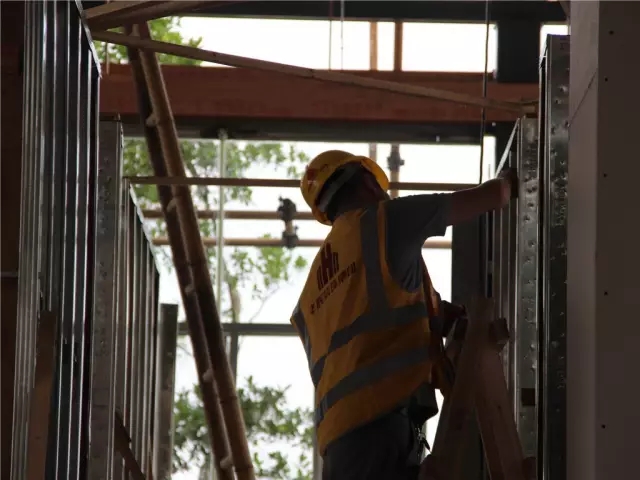 〖施工工艺〗为确保酒店每间客房的隔音效果,项目组采取一系列措施:背靠背的打墙方式、错位预埋线管、下水管隔音处理……。并采取排污排废分开处理,减少废臭反上房间。还要求消防喷淋、空调、灯规划统一成直线,从细节把控质量。