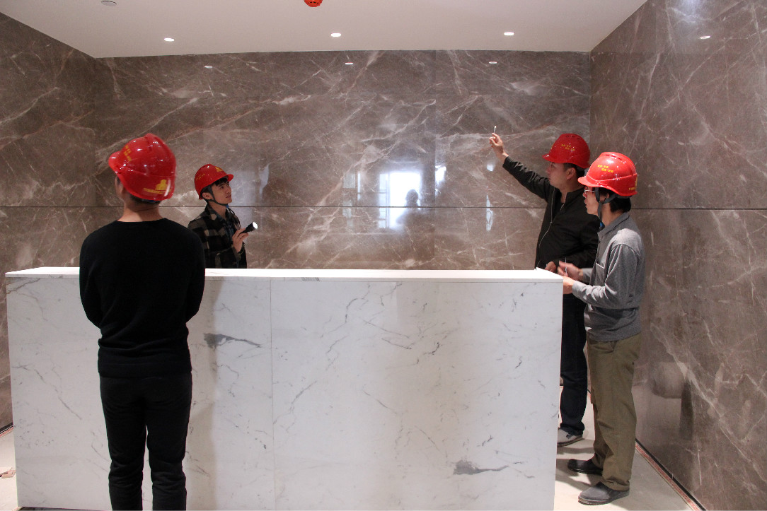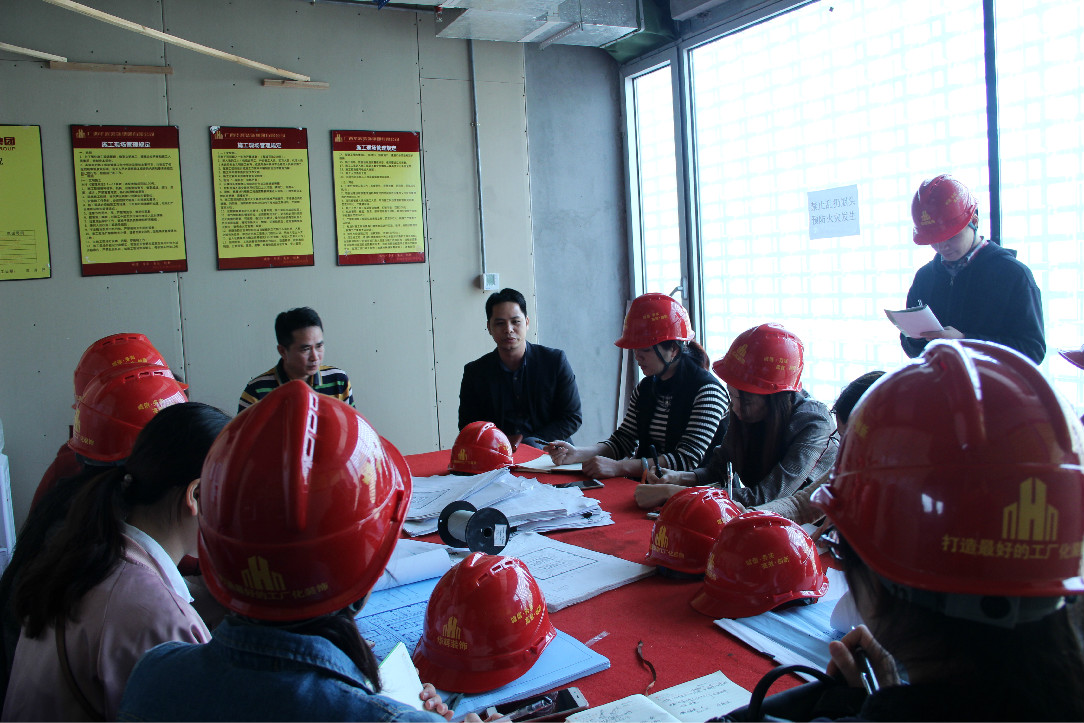 由太阳成tyc7111cc官网装饰集团承接的广西洋浦南华糖业集团办公楼层室内装修工程已经接近尾声,为不断完善和改进质量管理工作,提高质量管理水平,打造精品工程,2018年3月26日,集团组织工程中心质安部、工程管理部等多个部门联合成立自检自查小组,对该项目的质量、工艺进行全方位检查。