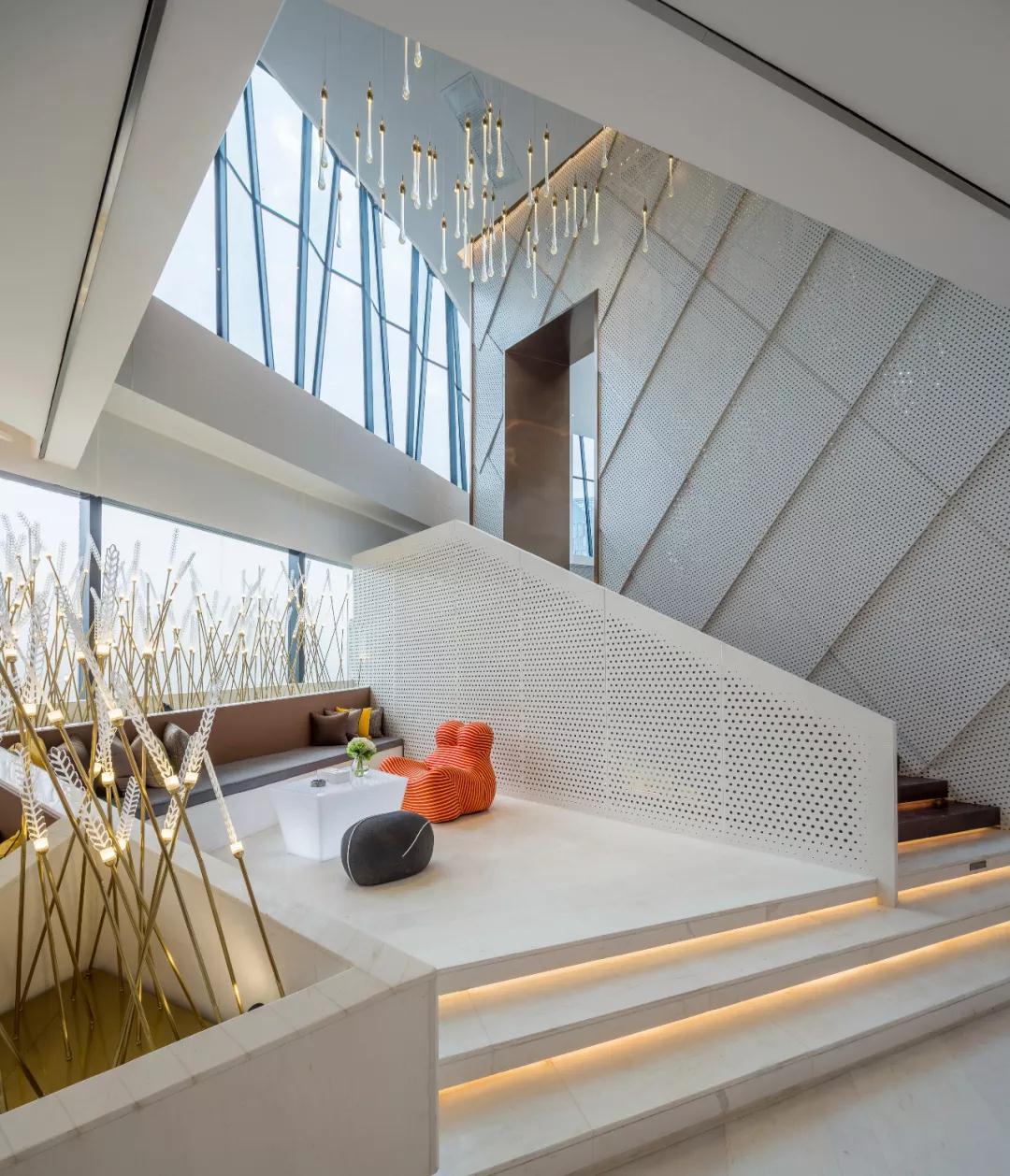 营销中心屹立于整个项目中最核心的位置,起到整个项目中画龙点晴的作用,为整个广西南宁世茂国际中心项目的首次面世形象,兼作周边高品质、年轻时尚楼盘的销售体验中心与交流中心。