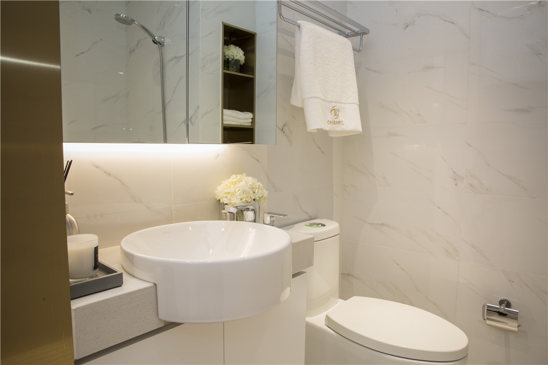 ▲卫生间干湿分离设计,将洗漱、洗浴功能有效分区,合理的收纳让空间更加简洁有序。