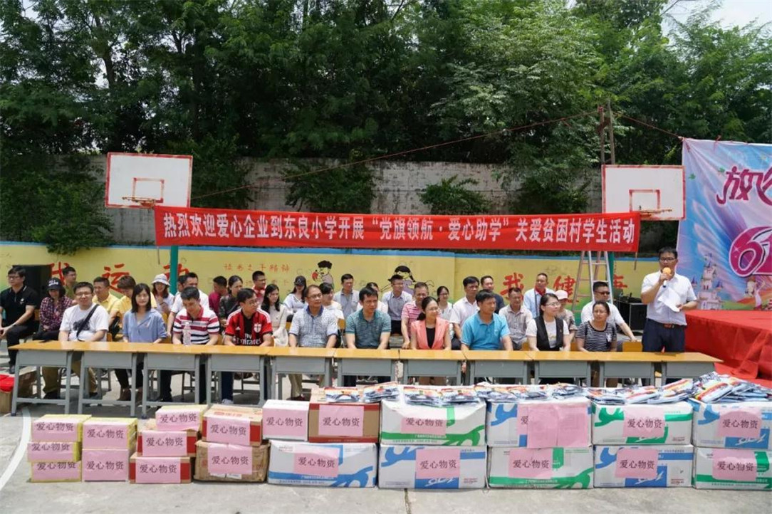 ▲在东良小学开展“党旗领航·爱心助学”关爱贫困村学生活动