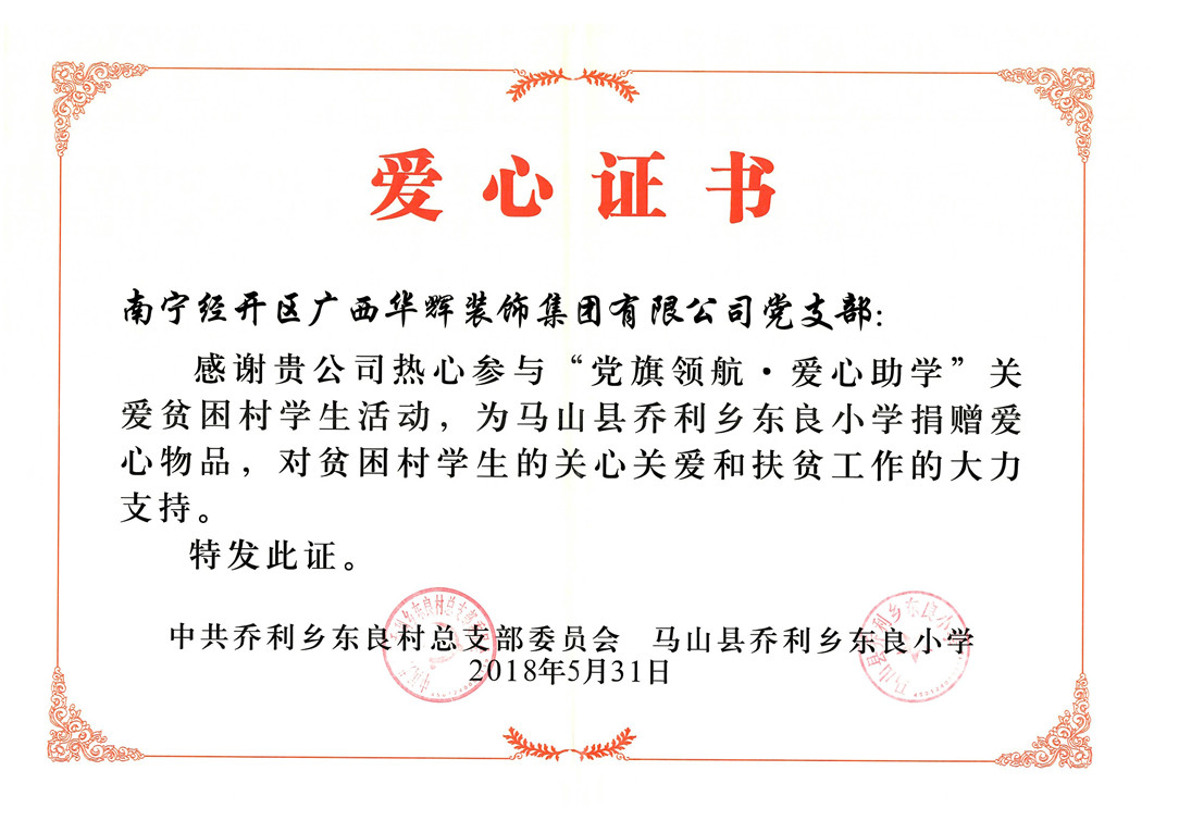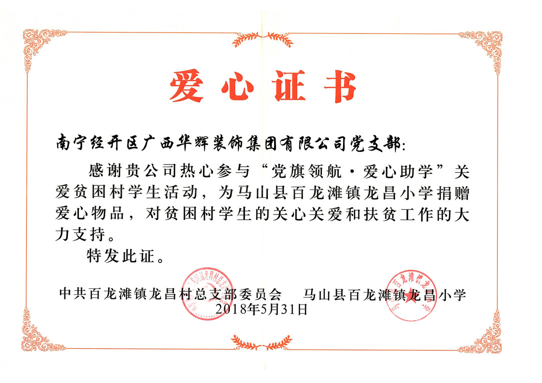 为广泛募集爱心助学资金,太阳成tyc7111cc官网装饰集团党支部发出通知,在集团范围内开展向马山县贫困村儿童捐款活动。此次捐款活动得到了集团各单位和广大干部职工的积极响应,大家迅速行动,慷慨解囊,用实际行动营造了慈善公益、爱心互助、乐善好施的良好社会氛围,为社会奉献自己的一份爱心。
