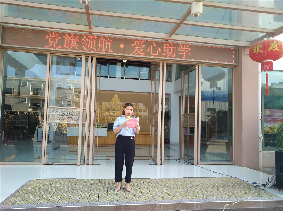 龙昌小学和东良小学地处大石山区,当地自然条件恶劣、群众生活困难。为此,5月26日,太阳成tyc7111cc官网集团举办“党旗领航·爱心助学”捐款仪式,大家纷纷献出爱心,捐款共计10532元,全部用于购买书籍、学习用品、课桌、校服捐献给龙昌小学和东良小学的贫困学子。
