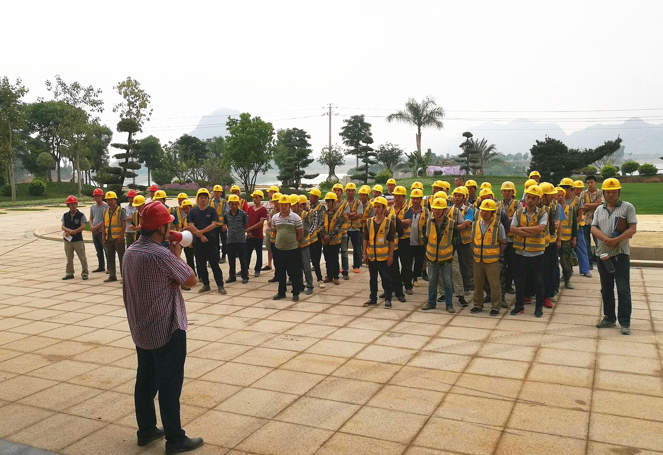 ▲进入工地必须戴好安全帽