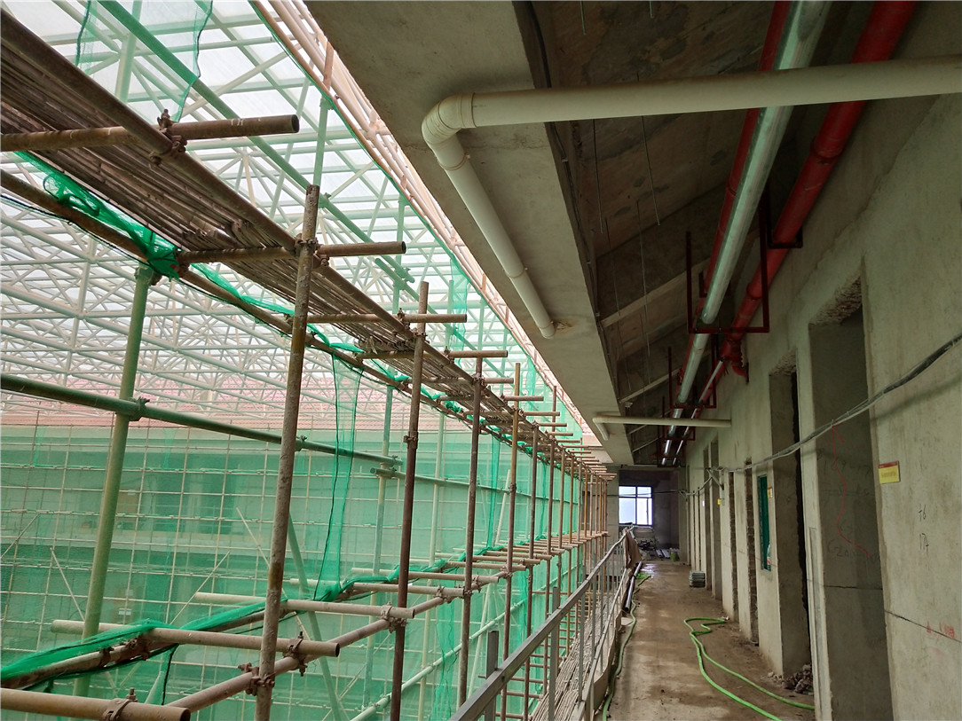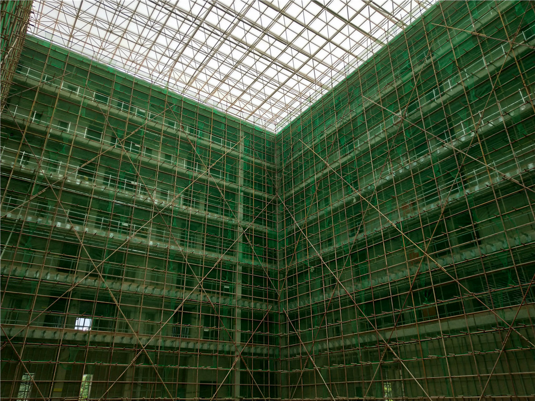 ▲脚手架钢管顺直、架体牢固,安全防护到位
