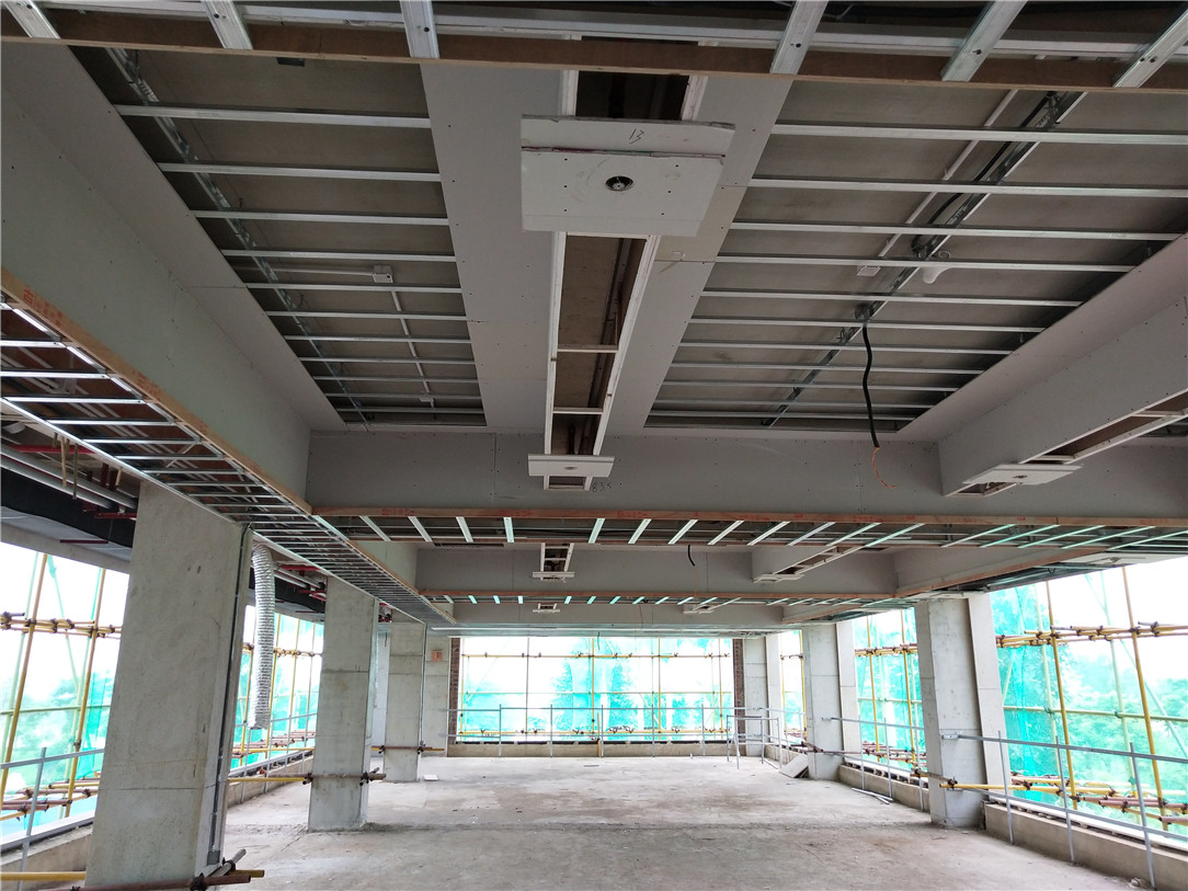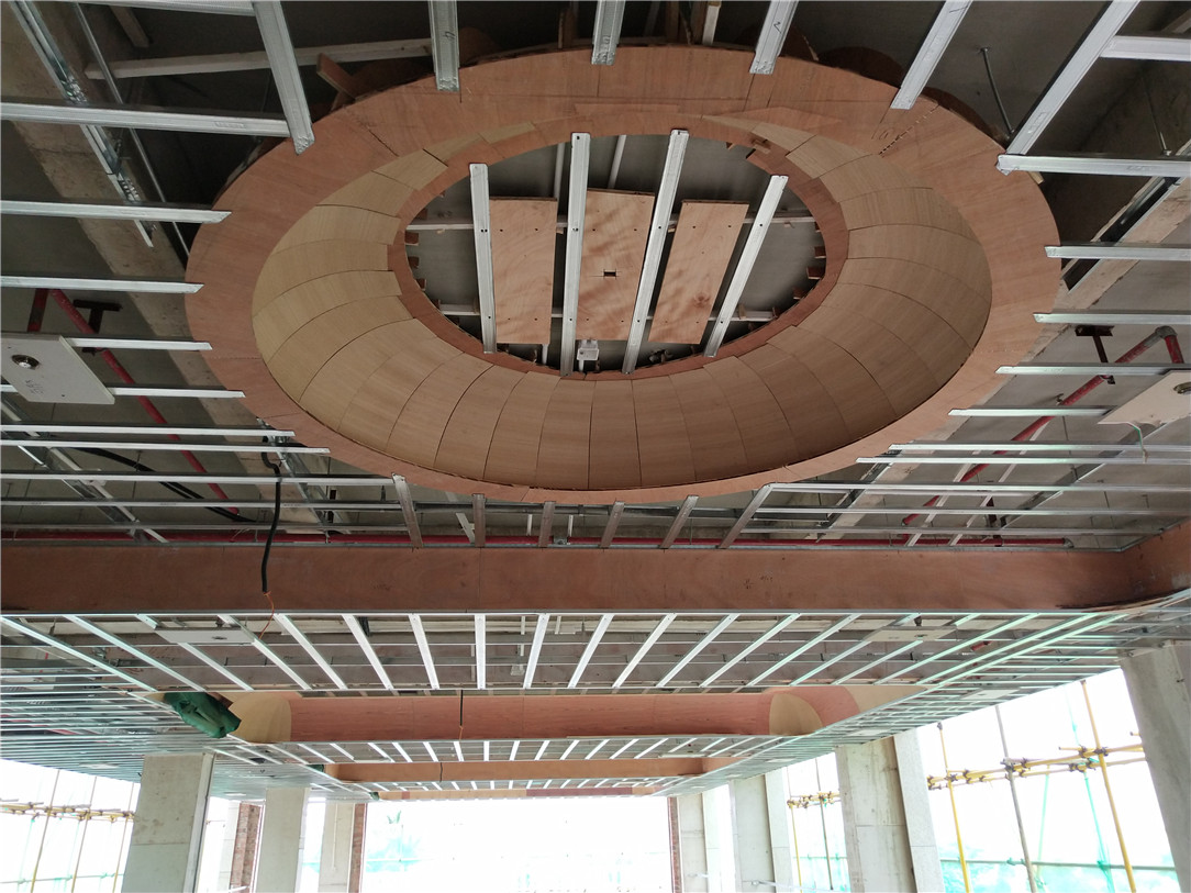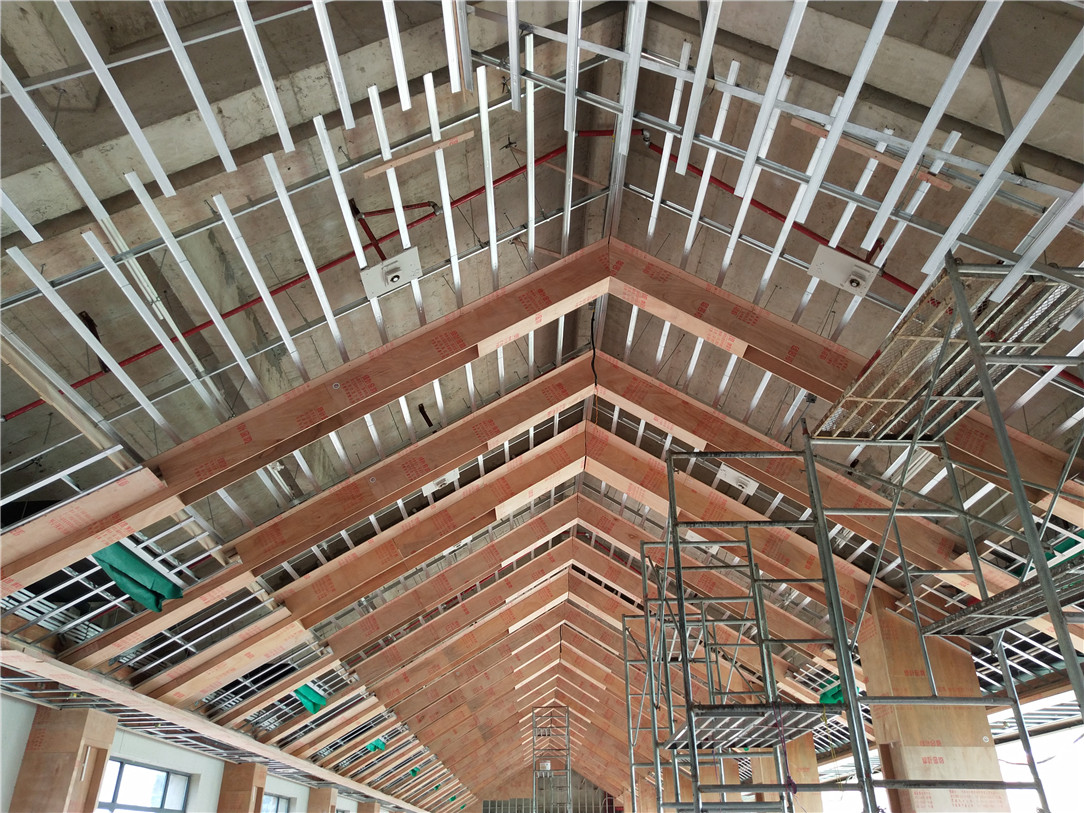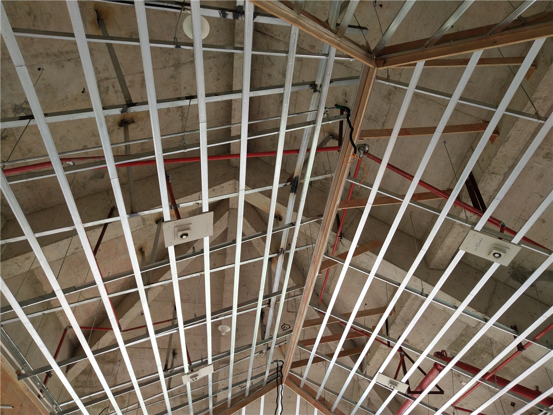 ▲2层包厢吊顶平整牢固,等待验收