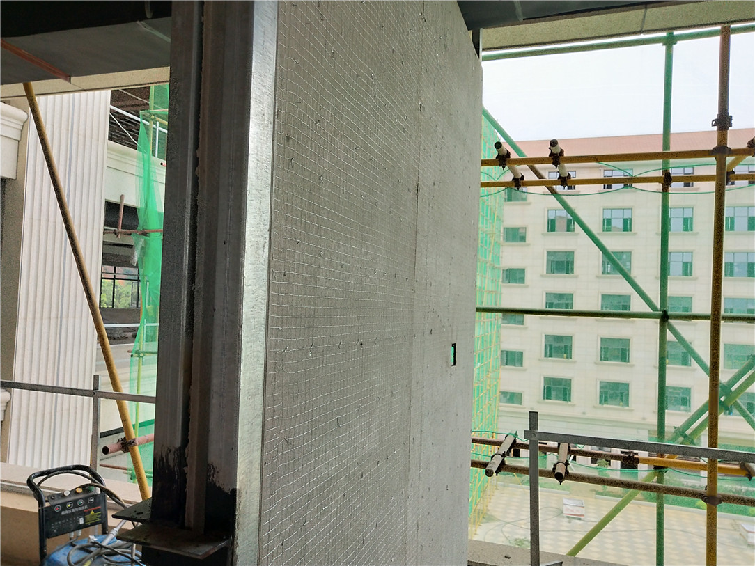 ▲2-7层包厢卫生间钢结构水泥压力、板基层隔墙挂网抹灰