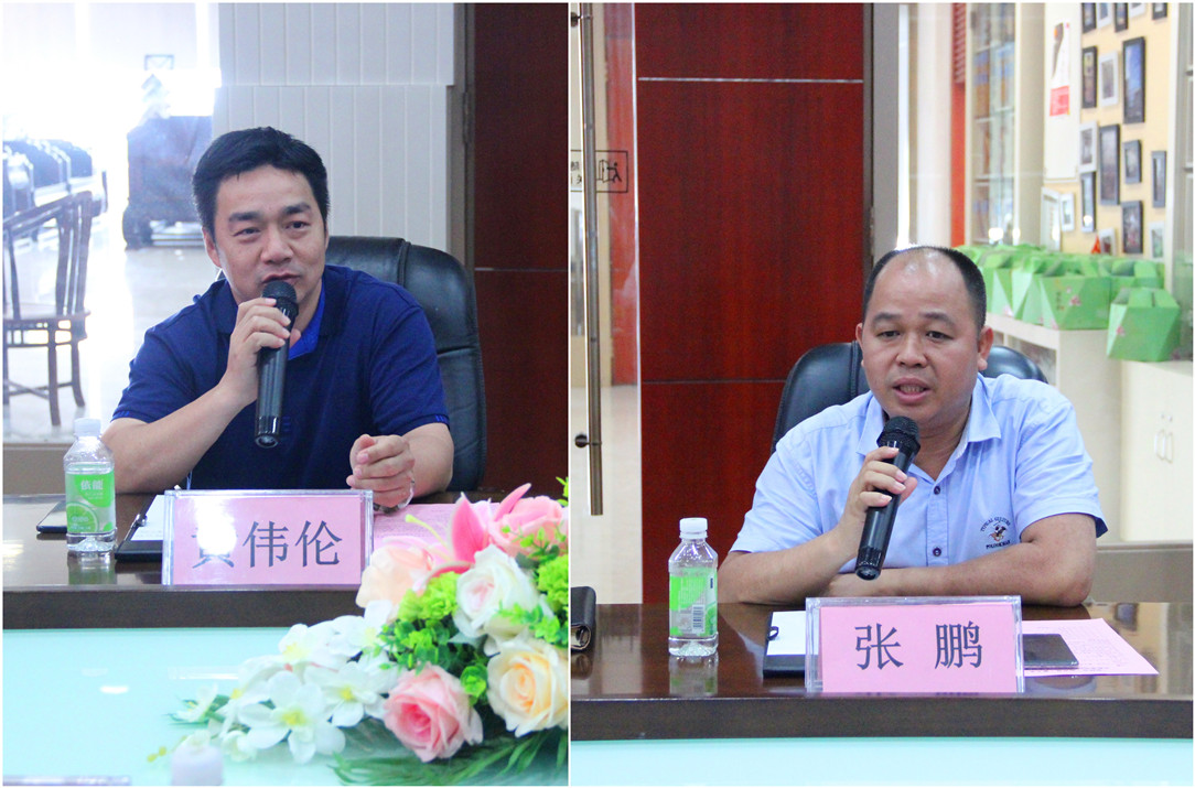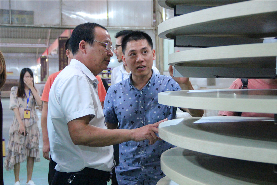 ▲袁继秋董事长向太阳成tyc7111cc官网工艺主任时世义了解生产工艺