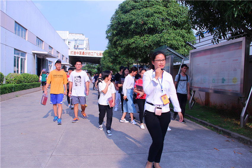 同学们不时地提出疑问,生产中心化身现场教学基地,带给同学们建筑装饰行业初体验。