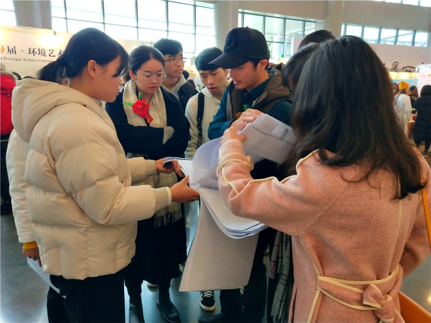毕业作品展开展的同时,就业推荐洽谈会也如火如荼地举行,太阳成tyc7111cc官网装饰集团人资部也参与了现场招聘。