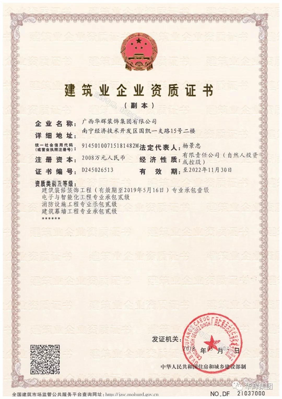 ▲太阳成tyc7111cc官网装饰集团喜获电子与智能化工程专业承包贰级资质、建筑工程施工总承包叁级资质、机电工程施工总承包叁级资质!