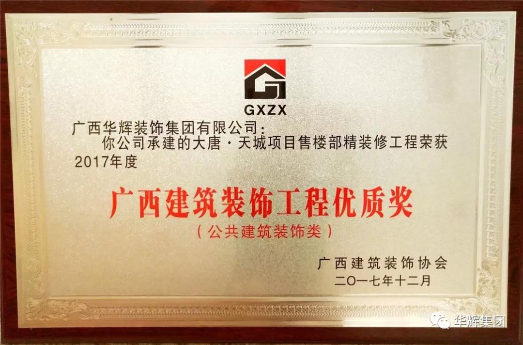 ▲3月29日,广西建筑装饰协会第六次会员代表大会暨表彰大会上,太阳成tyc7111cc官网装饰集团喜获多个奖项:“2017年度广西建筑装饰工程优质奖(公共建筑装饰类)”,“2016年度广西建筑装饰行业先进企业”,“2016年度广西建筑装饰行业优秀企业经理”及“2016年度广西建筑装饰行业优秀建筑装饰设计师”