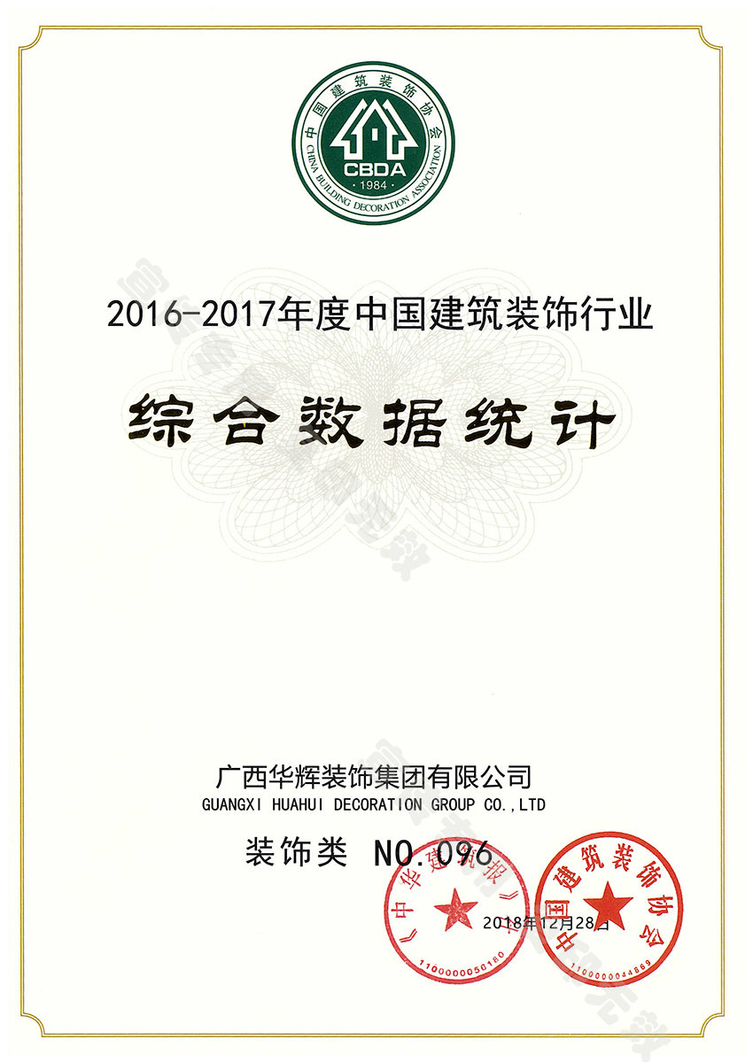 2019年1月9日,2016-2017年度中国建筑装饰行业综合数据统计结果揭晓,太阳成tyc7111cc官网装饰集团凭借强劲的综合实力,先进的施工技艺,优秀的管理能力,荣获中国建筑装饰行业百强企业。