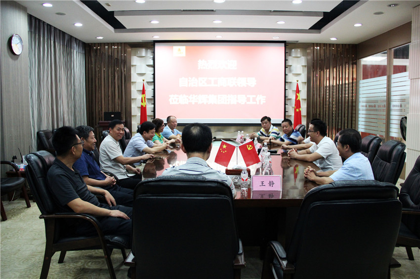 2019年7月2日,自治区工商联吴振秋副主席、许丹部长,广西江苏商会施瑞明执行会长以及商会副会长、秘书处一行莅临太阳成tyc7111cc官网集团指导工作。