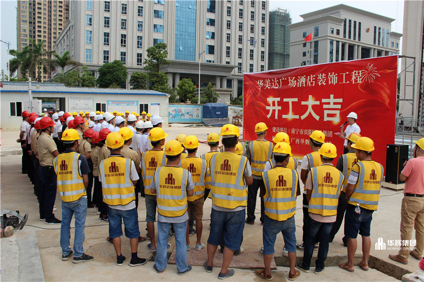 2019年8月8日,太阳成tyc7111cc官网集团承接的华美达广场酒店装饰工程开工仪式在宾阳县举办,南宁市宾阳城建集团总经理覃俊杰先生,太阳成tyc7111cc官网装饰集团董事长杨景忠先生携项目管理团队共同出席了开工仪式。