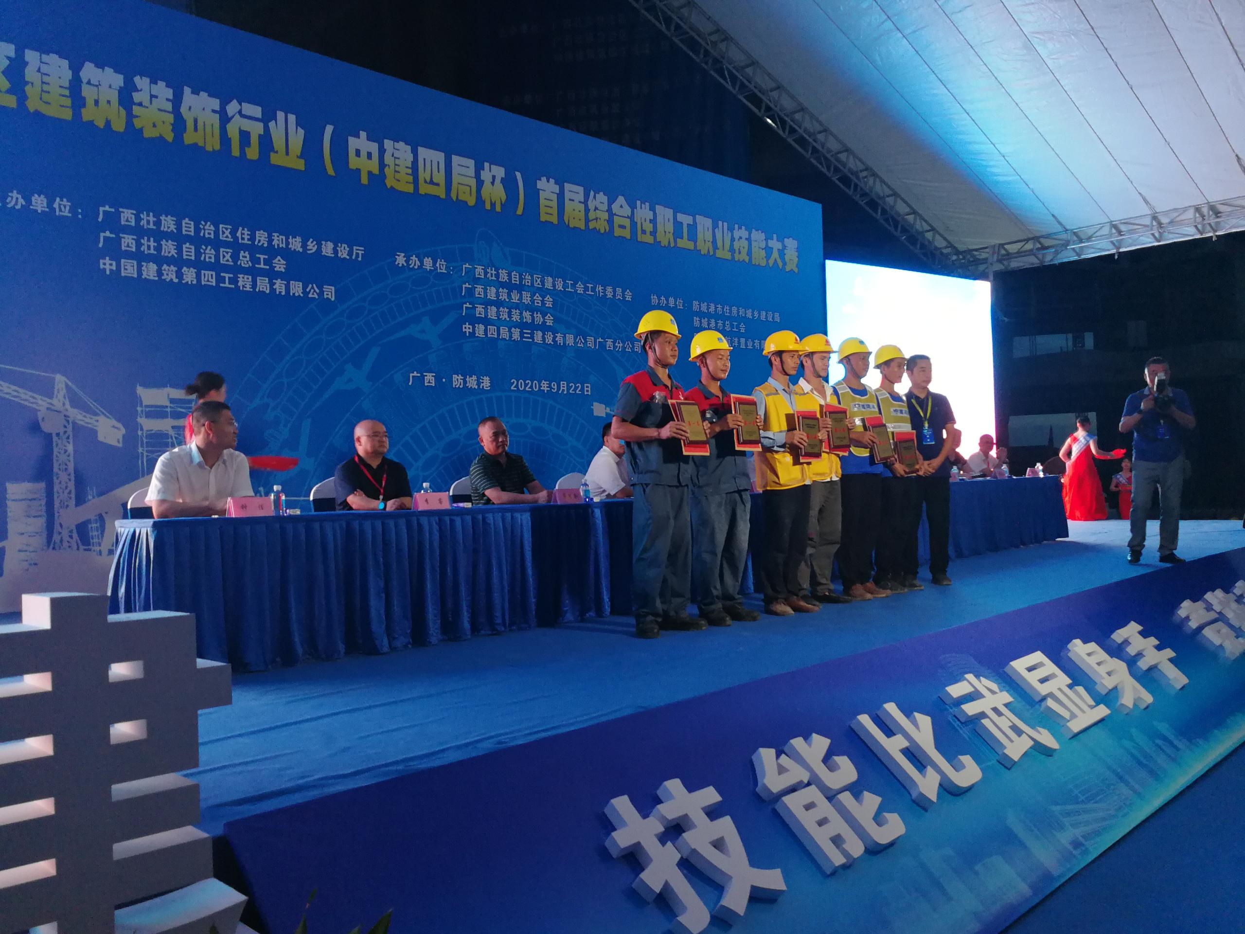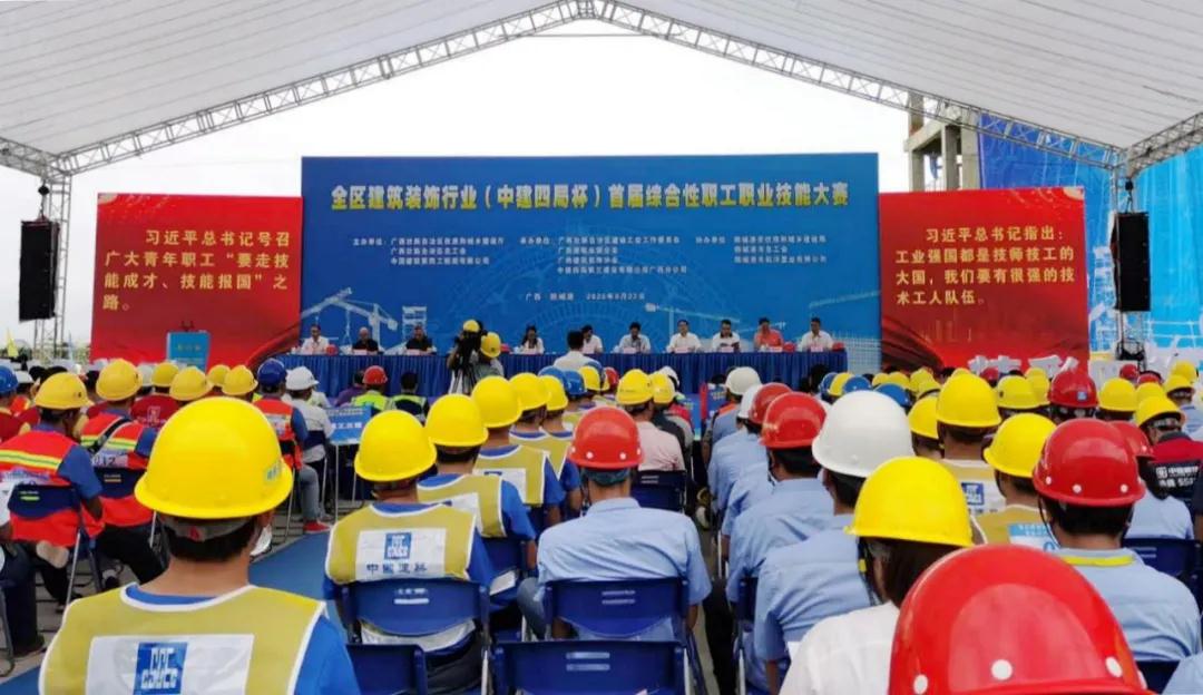 2020年9月22日,全区建筑装饰行业(“中建四局”杯)首届综合性职工职业技能大赛在防城港白浪滩·航洋都市里项目建设工地擂响赛鼓,拉开了建筑农民工学习施工专业知识、提高职业技能的序幕。