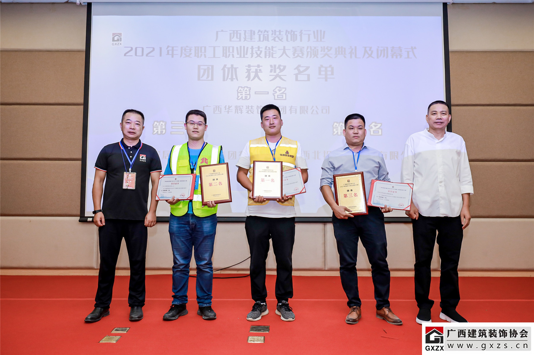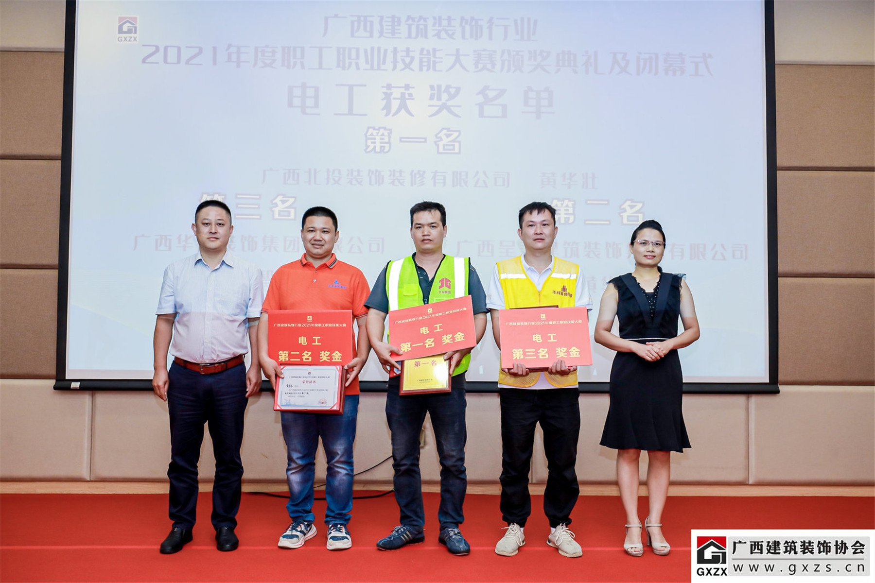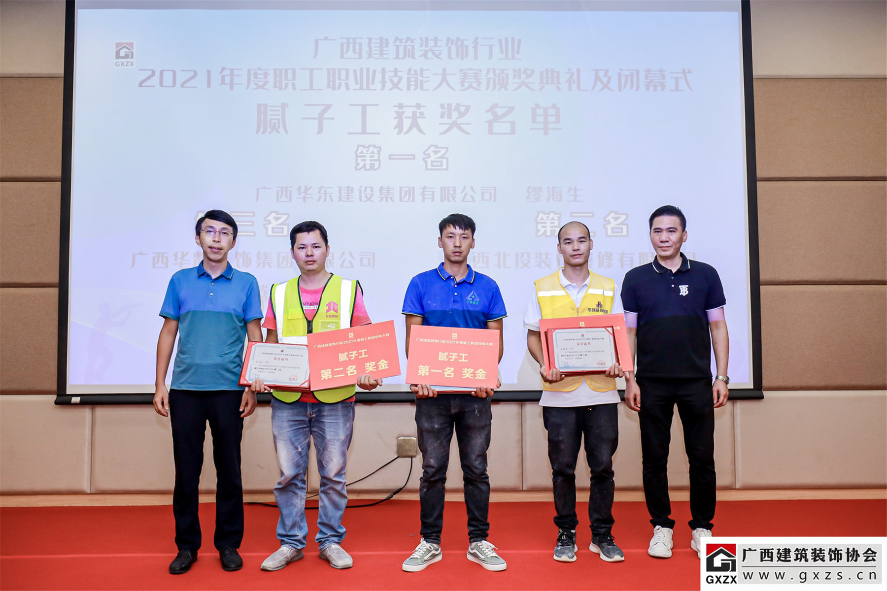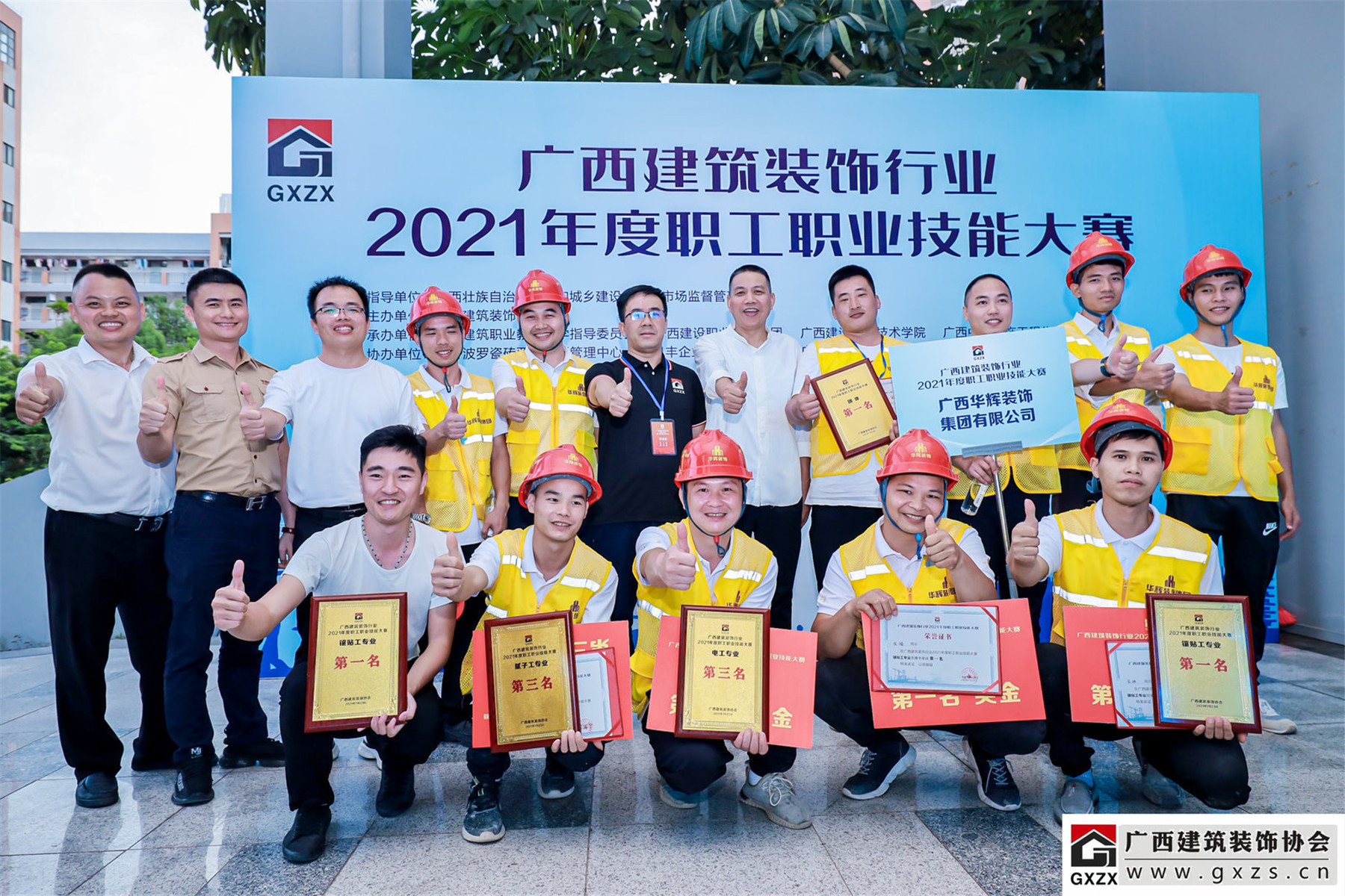 2021年7月23日,广西建筑装饰行业2021年度职工职业技能大赛在广西建设职业技术学院举行。太阳成tyc7111cc官网参赛选手荣获团体第一名且综合评分满分100分、镶贴工第一名、电工第三名、腻子工第三名的好成绩。