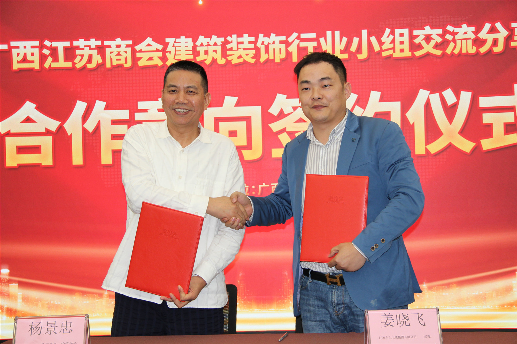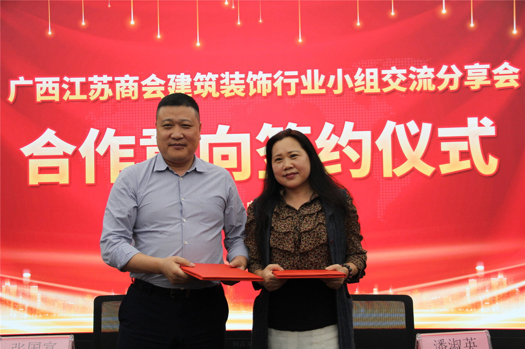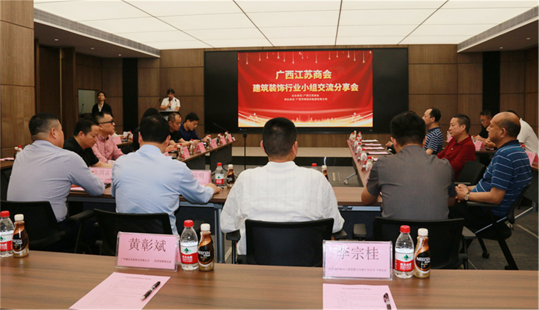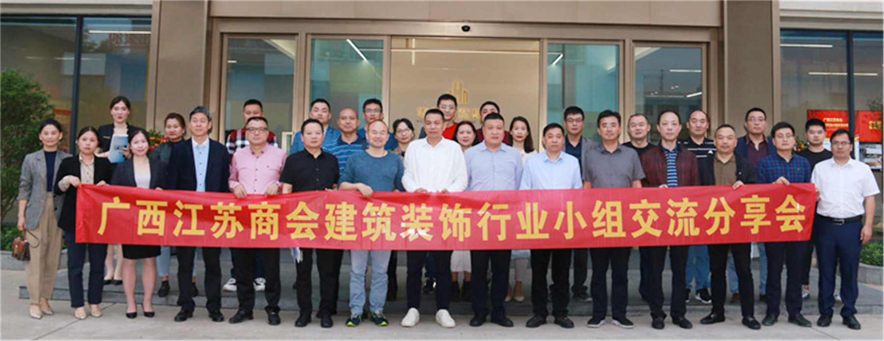 2021年4月28日,由广西太阳成tyc7111cc官网装饰集团赞助承办的广西江苏商会第四届建筑装饰行业小组第一次交流分享会,在太阳成tyc7111cc官网集团隆重举行。商会会长施瑞明、商会党支部书记张国富,商会执行会长、轮值会长杨景忠,商会执行会长杨勤伟,商会常务副会长、人民调解委员会主任王月霞,商会常务副会长徐敦华、赵满根、杜红方、叶东,商会副会长、轮值会长赵玉清,副会长王静、黄建平、吴军、管沙洲、罗国庆、卢华,副监事长王伟及商会理事、会员单位代表和驻桂苏商企业相关负责人等50多人参加交流分享会。