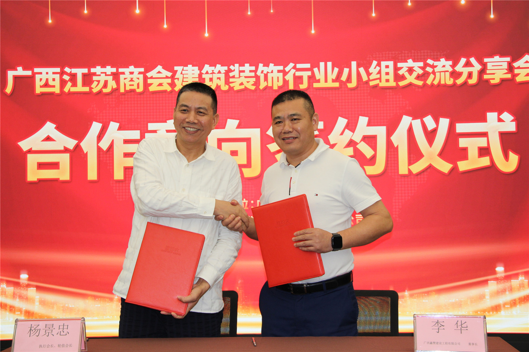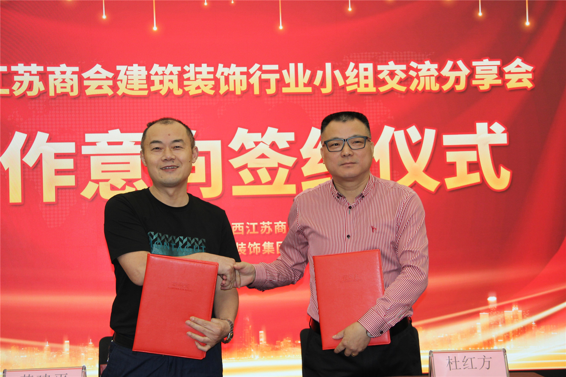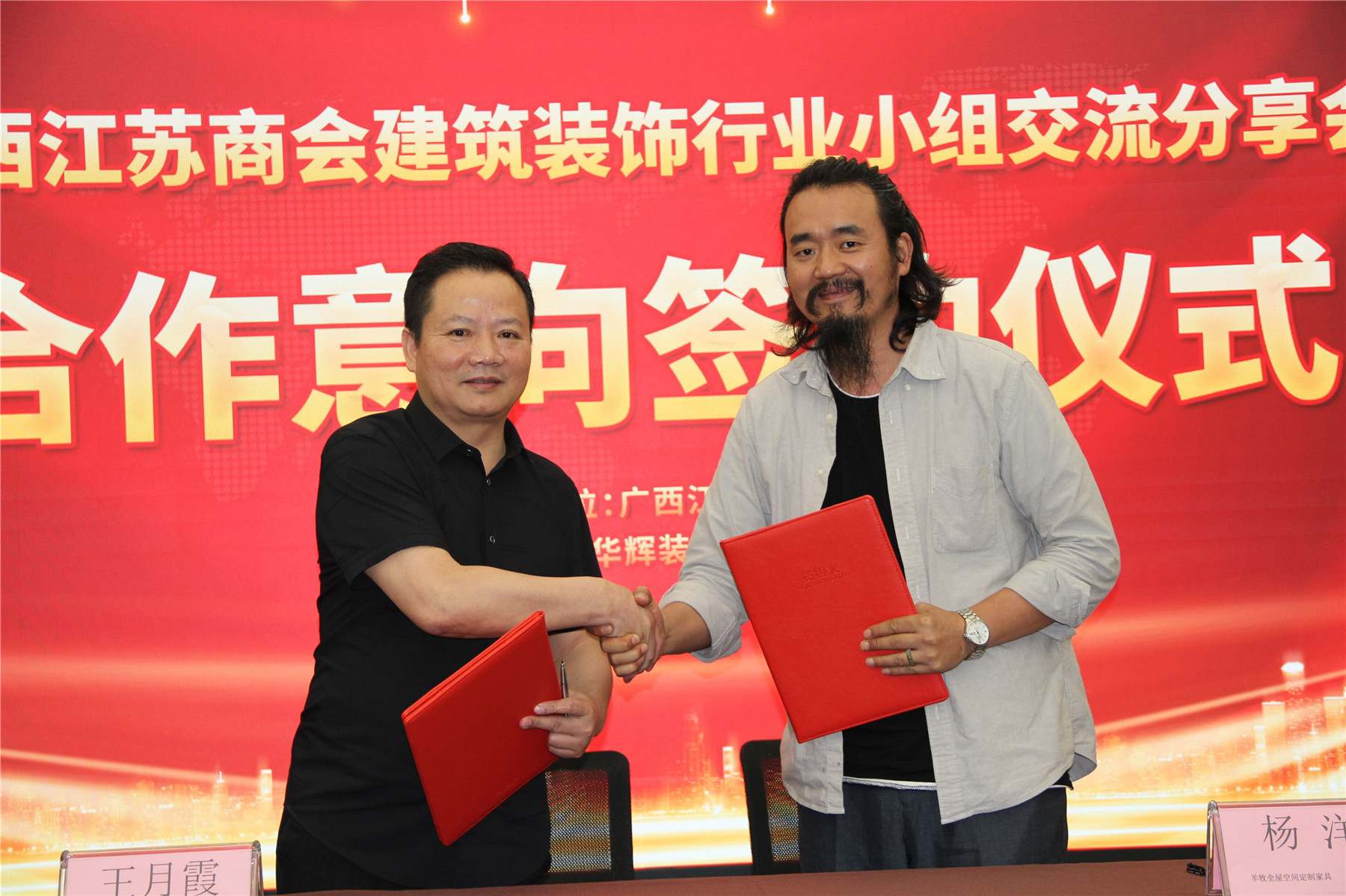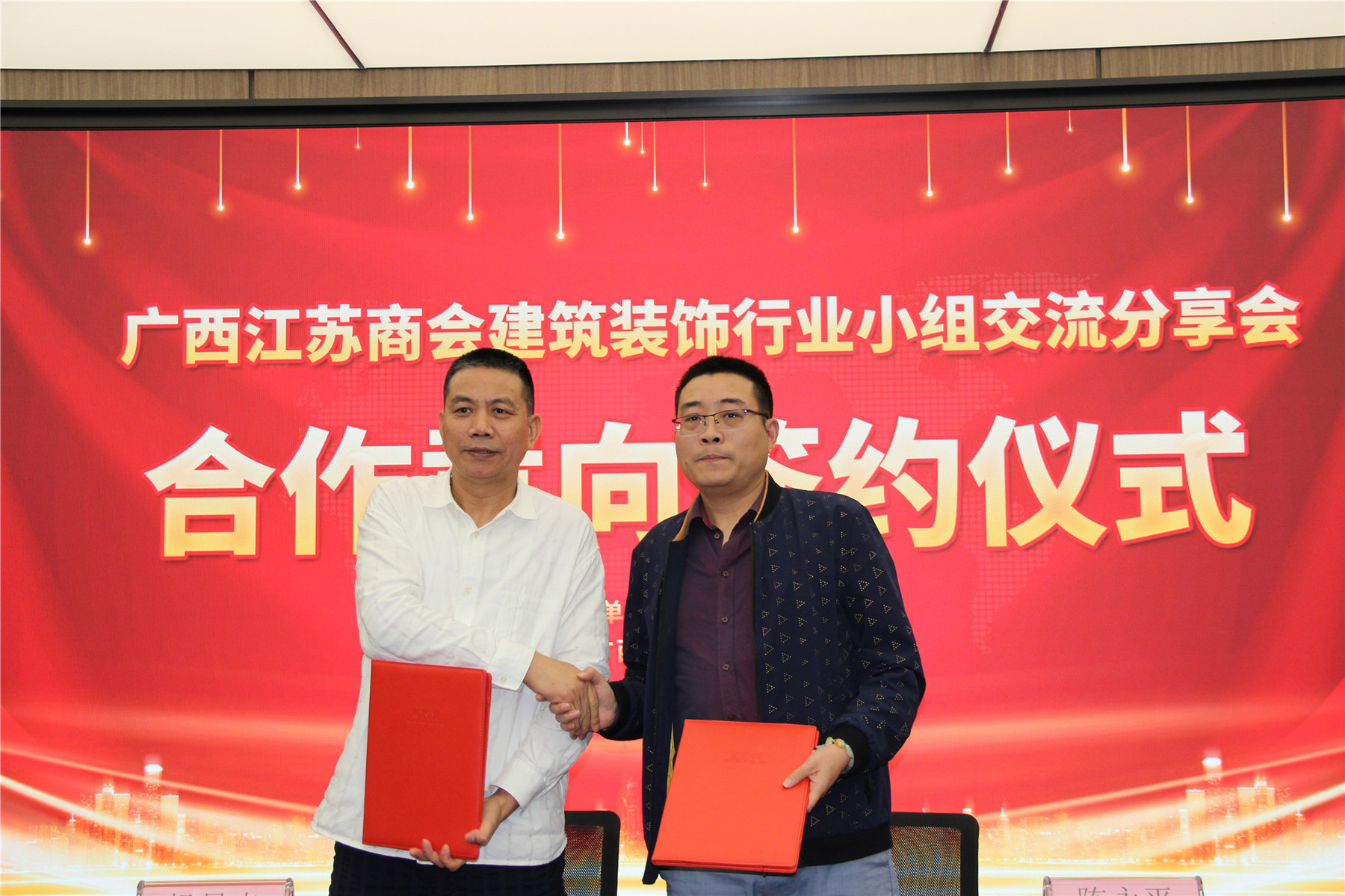 2021年4月28日,由广西太阳成tyc7111cc官网装饰集团赞助承办的广西江苏商会第四届建筑装饰行业小组第一次交流分享会,在太阳成tyc7111cc官网集团隆重举行。商会会长施瑞明、商会党支部书记张国富,商会执行会长、轮值会长杨景忠,商会执行会长杨勤伟,商会常务副会长、人民调解委员会主任王月霞,商会常务副会长徐敦华、赵满根、杜红方、叶东,商会副会长、轮值会长赵玉清,副会长王静、黄建平、吴军、管沙洲、罗国庆、卢华,副监事长王伟及商会理事、会员单位代表和驻桂苏商企业相关负责人等50多人参加交流分享会。