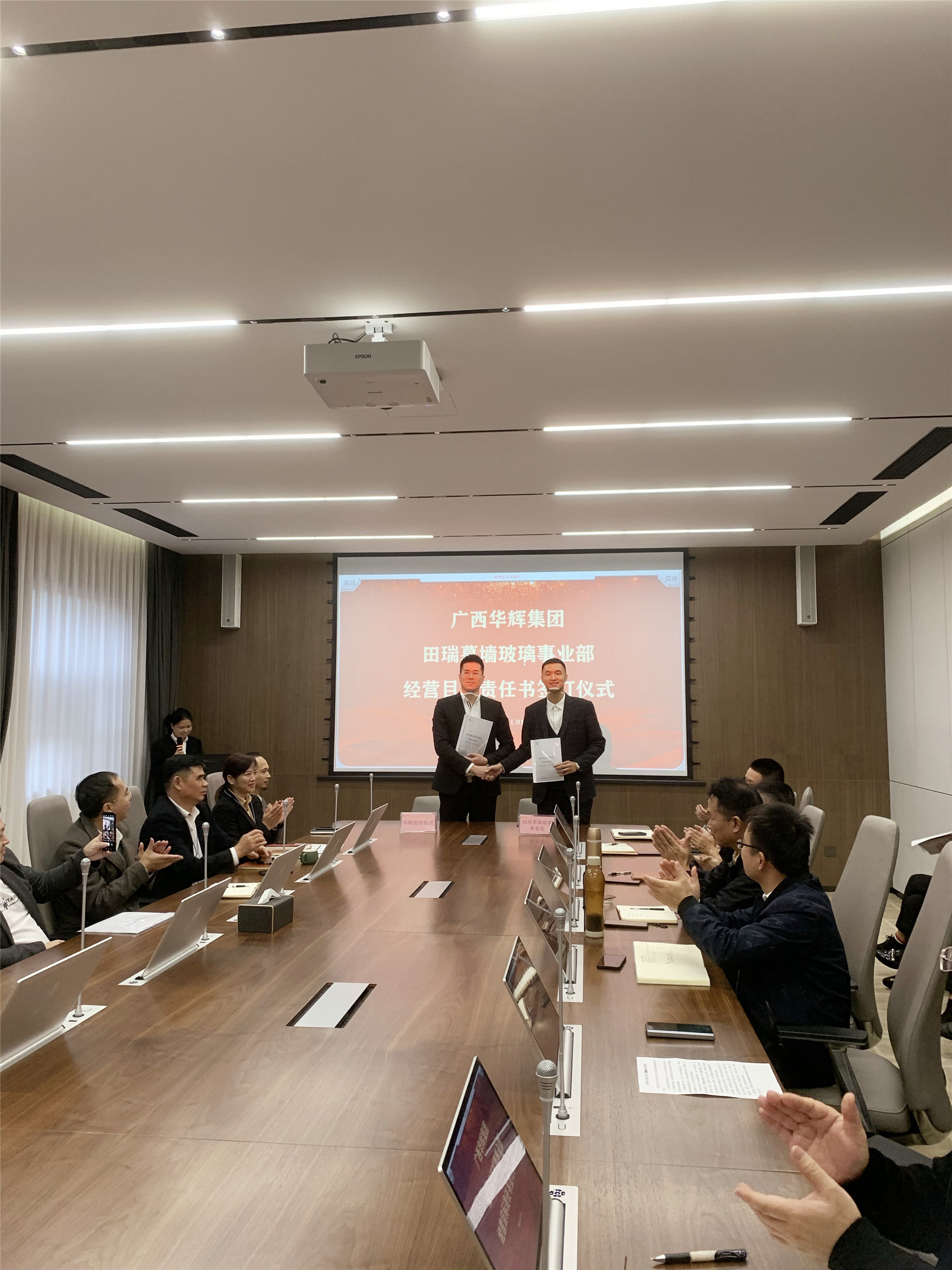 2021年11月1日,广西太阳成tyc7111cc官网装饰集团有限公司与南宁田瑞玻璃有限责任公司,正式成立“太阳成tyc7111cc官网集团田瑞玻璃幕墙事业部”,双方签署经营目标责任书,开启全新领域的拓展。
