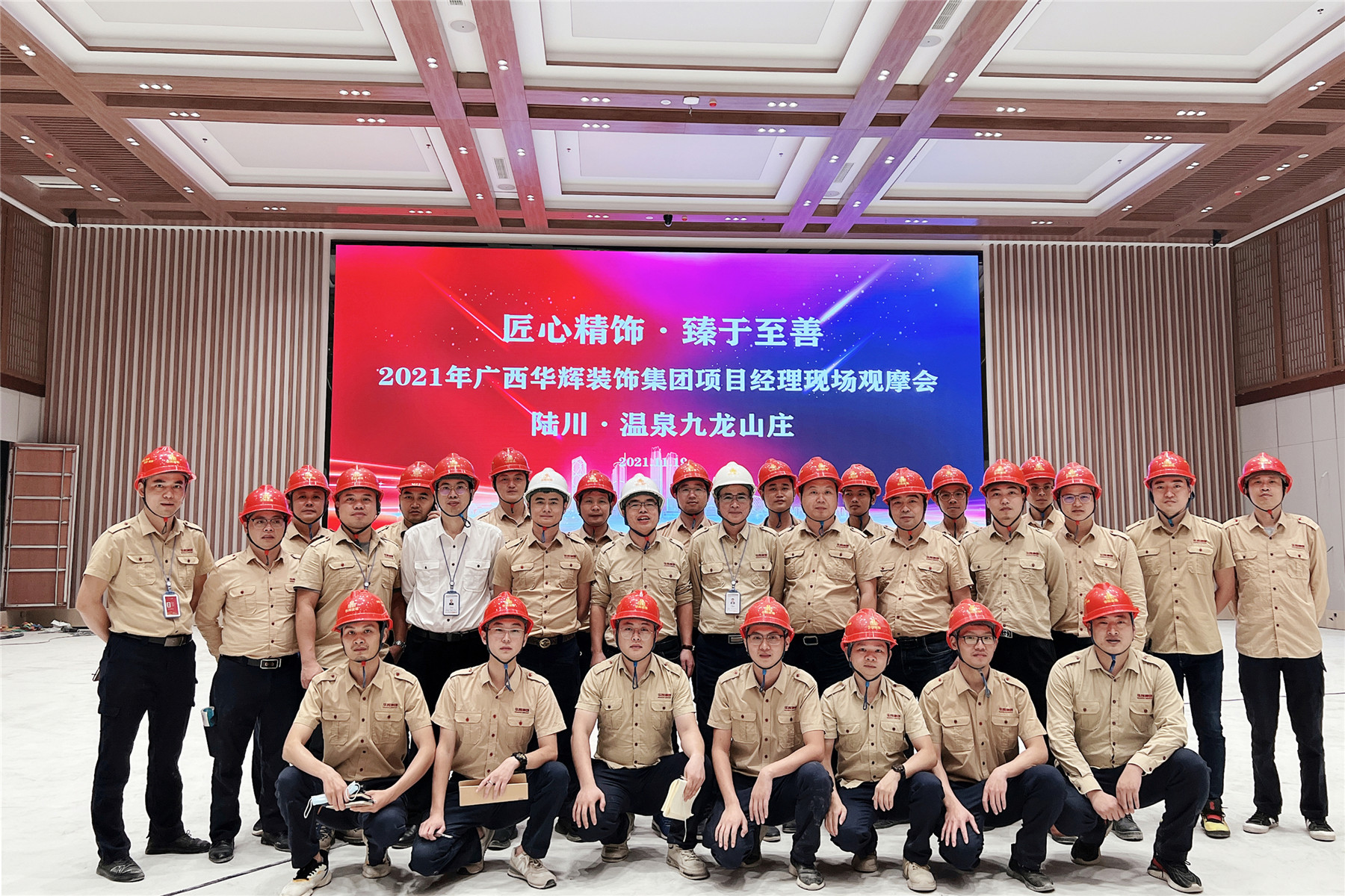2021年11月19日,在陆川·温泉九龙山庄项目,太阳成tyc7111cc官网集团成功举办项目经理现场观摩会。观摩会以“匠心精饰·臻于至善”为主题,旨在总结亮点,查找不足,相互促进,全面提升工程项目现场管理水平。