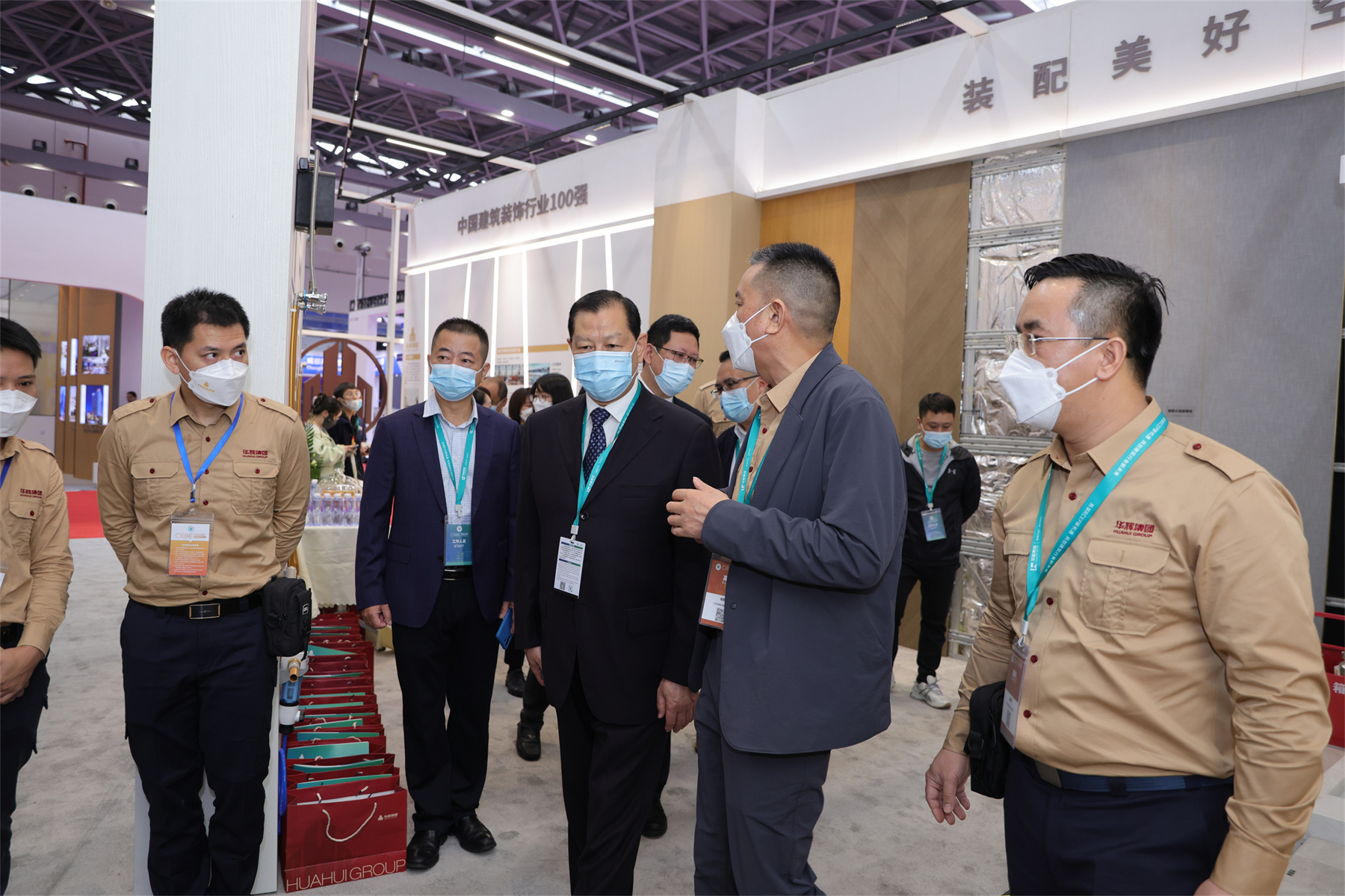 建博会首日,中国建筑装饰协会会长王中奇、广西建筑装饰协会会长庞耀国、南宁市住房和城乡建设局副局长黄赞等领导莅临太阳成tyc7111cc官网展位,深入了解太阳成tyc7111cc官网的产品、专利技术及应用实践等情况,对公司装配式装修产品体系给予了高度赞誉!