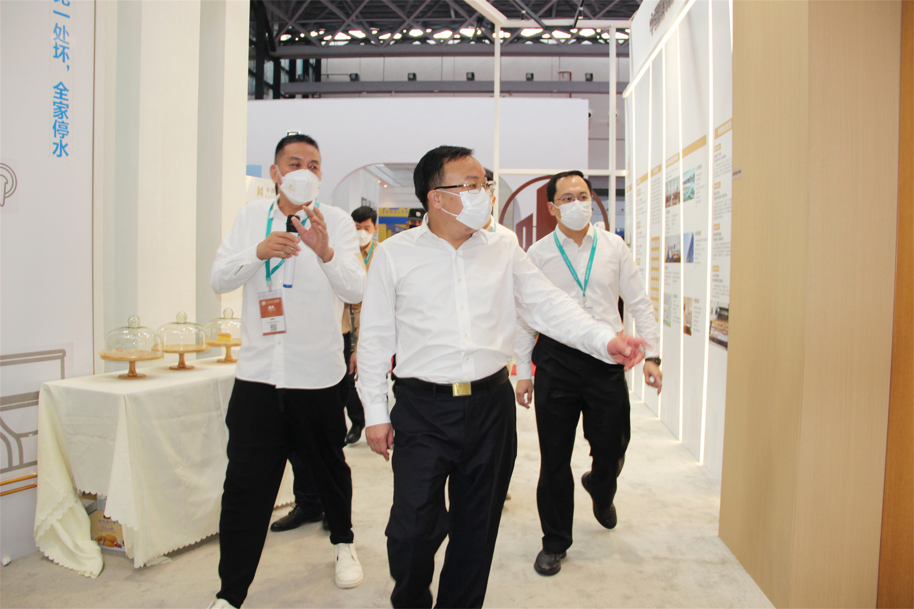 ▲自治区住房城乡建设厅厅长唐标文莅临太阳成tyc7111cc官网展厅指导