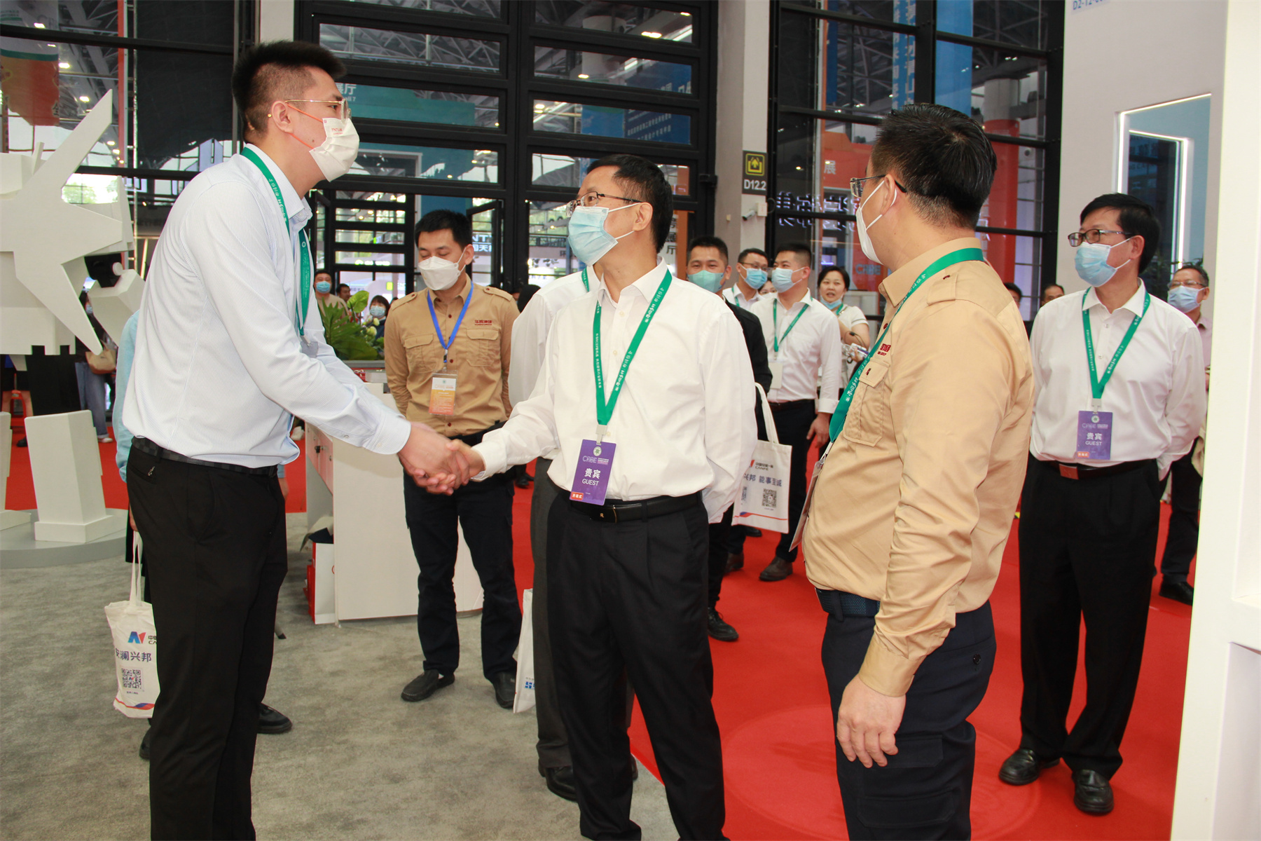 2022年11月26日,2022中国—东盟建筑业暨高品质人居环境博览会第二天,自治区住房城乡建设厅副厅长潘国雄莅临太阳成tyc7111cc官网展厅指导。