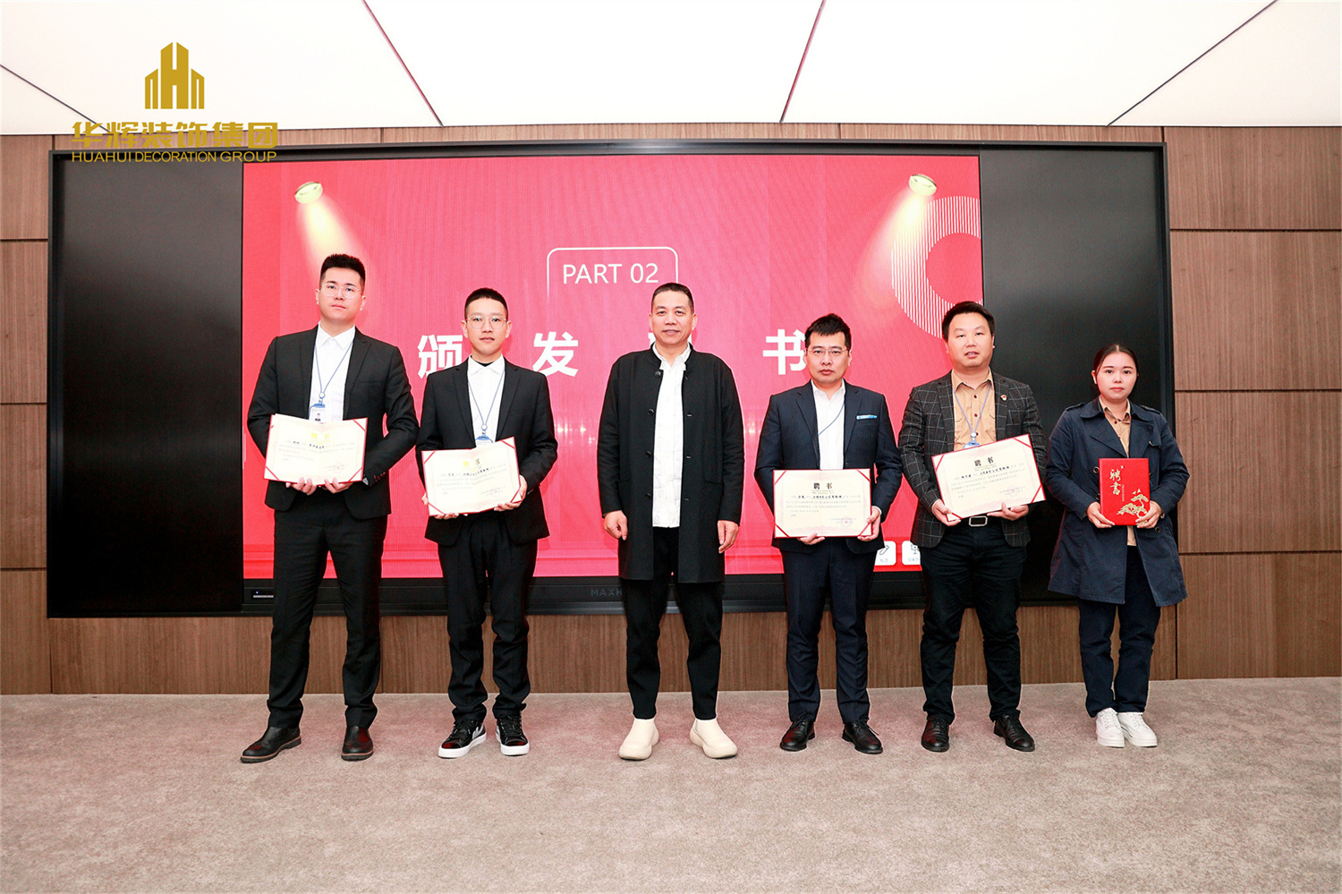 ▲集团董事长杨景忠为晋升的管理人员颁发聘书