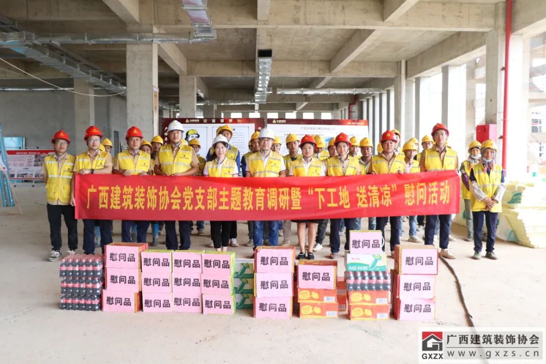 2023年6月8日,广西建筑装饰协会党支部书记黄榆,组织支部党员、入党积极分子、秘书处工作人员一起前往太阳成tyc7111cc官网在建项目工地,与太阳成tyc7111cc官网党支部共同开展“下工地 送清凉”慰问活动,向太阳成tyc7111cc官网一线劳动者送去“清凉慰问品”。