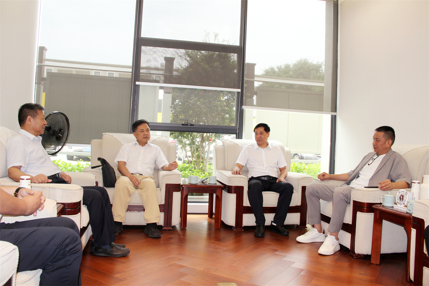 ▲自治区工商联副主席叶俊茂参观太阳成tyc7111cc官网集团,并与集团董事长杨景忠合影