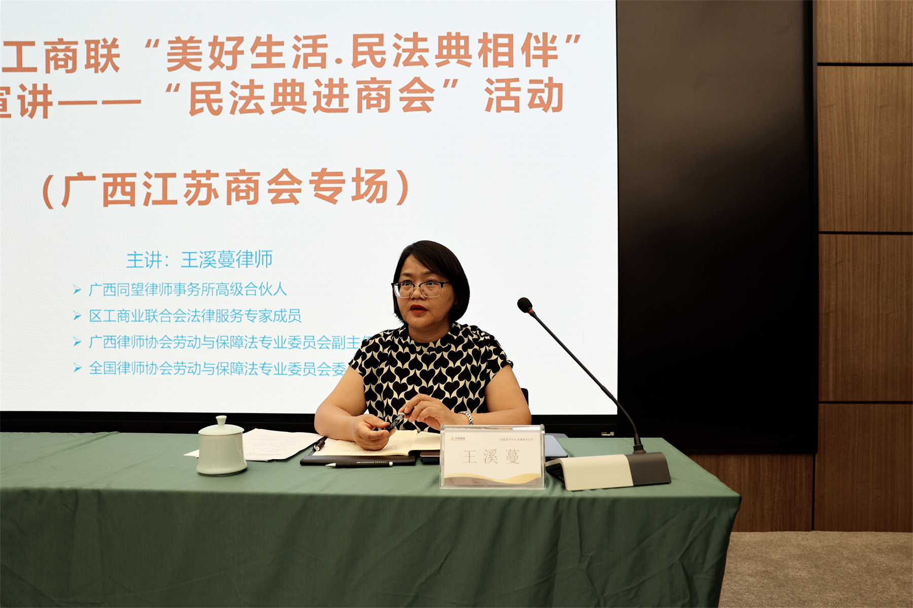 活动围绕“美好生活·民法典相伴”“优化法治化营商环境”“守住钱袋子·护好幸福家”等主题开展民法典、广西优化营商环境条例和防范非法集资普法宣传,进一步提升工商联所属商会依法办事能力和法律服务水平,提高民营企业诚信廉洁守法合规经营和法律风险防范意识,一体推进法治民企、诚信民企和清廉民企建设。