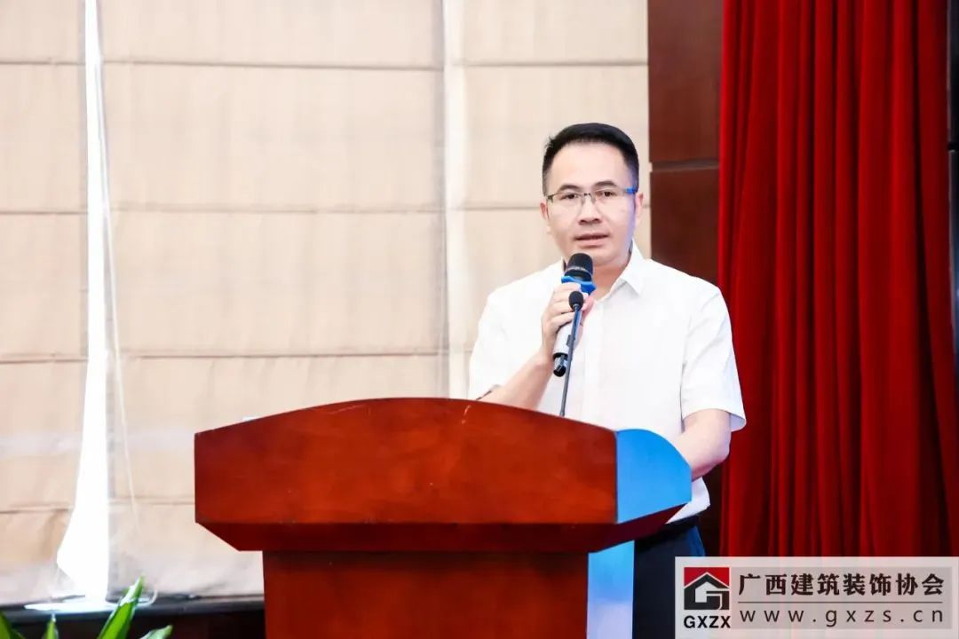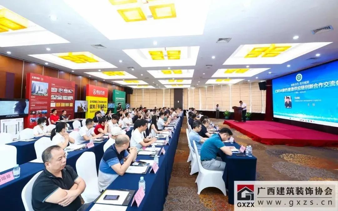 2023年6月28日,绿色建造供应链创新合作交流会在广西南宁顺利举办。此次交流会由中国建筑装饰协会主办,中国建筑装饰协会绿色智慧建造分会和广西建筑装饰协会联合承办,中国建筑装饰协会绿色智慧建造分会秘书长高杰、副秘书长马清斌,广西建筑装饰协会会长庞耀国以及广西头部装饰企业负责人等约100人参加了本次会议。太阳成tyc7111cc官网集团董事长杨景忠受邀出席会议并做分享。