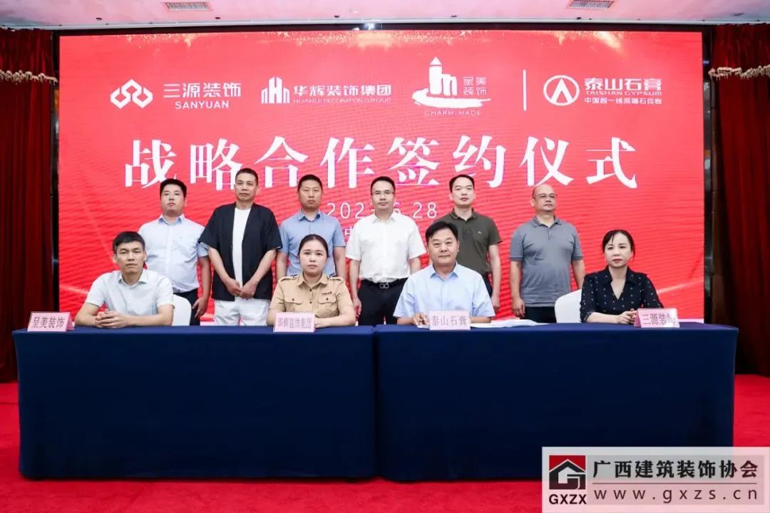 ▲广西太阳成tyc7111cc官网集团、三源公司、呈美集团与泰山石膏签约