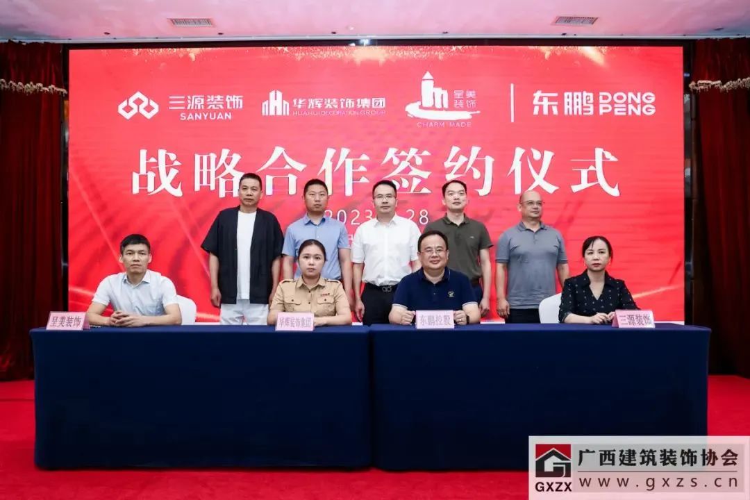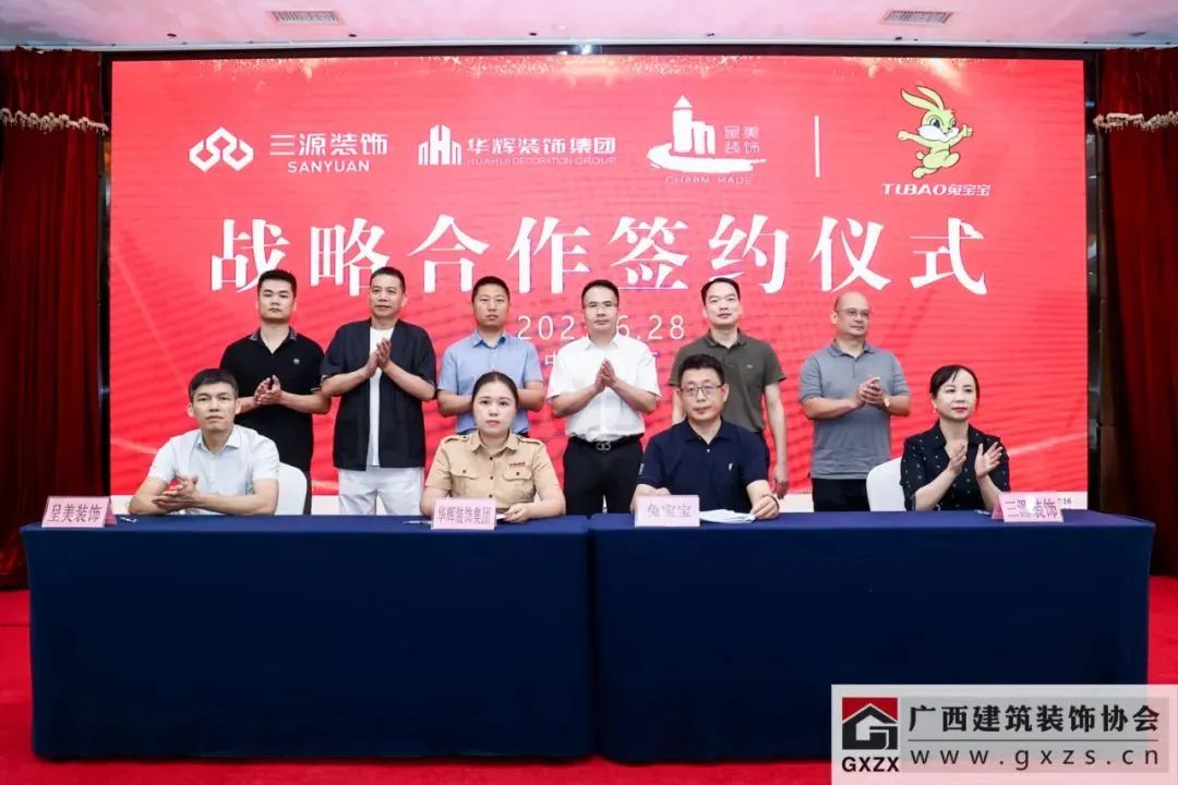 ▲广西太阳成tyc7111cc官网集团、三源公司、呈美集团与德华兔宝宝材料签约