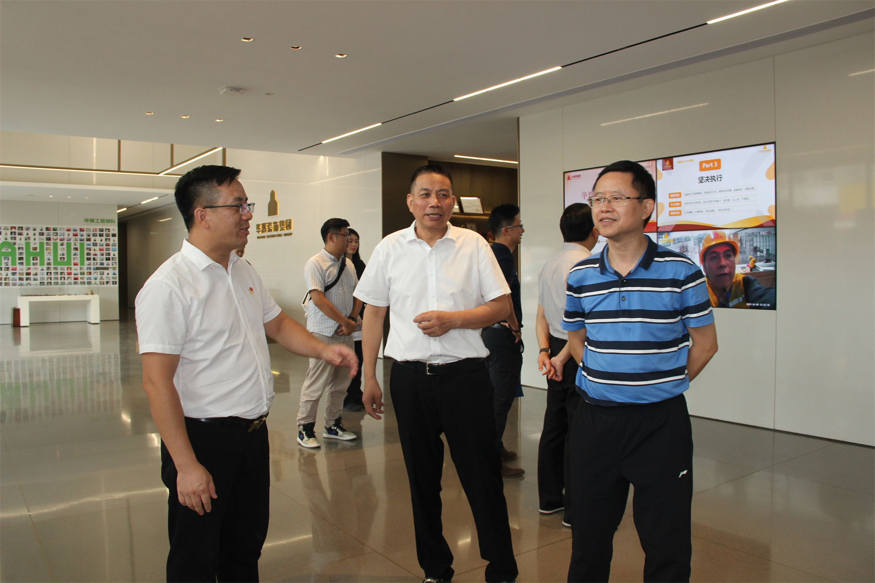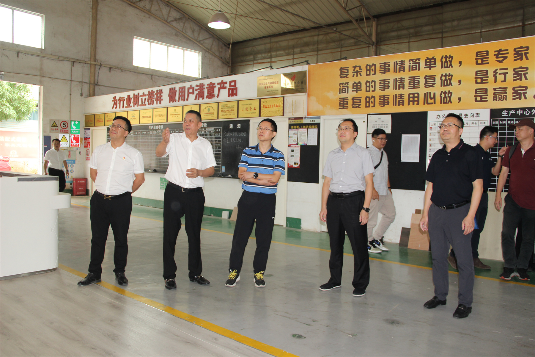 ▲潘国雄(左三)深入调研太阳成tyc7111cc官网生产车间