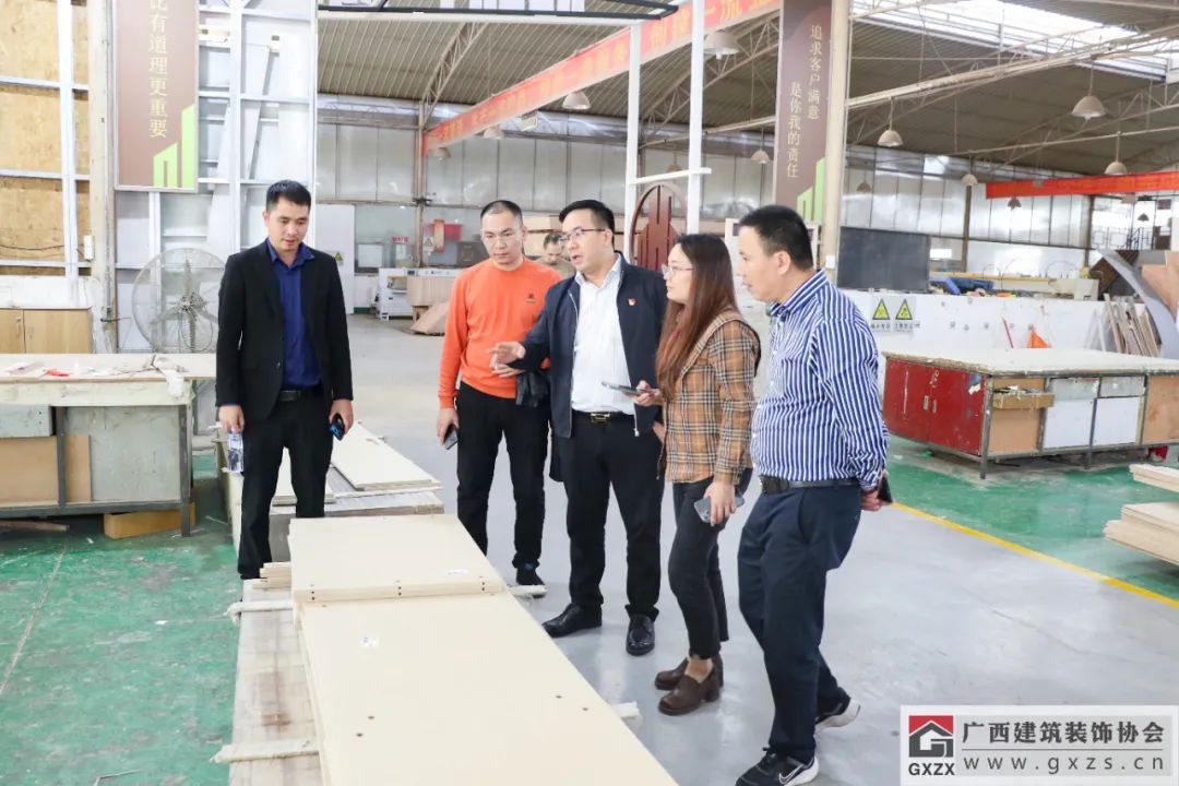 钦州市建筑装饰行业协会叶丙干会长一行到访太阳成tyc7111cc官网,广西建筑装饰协会施工委副主任、太阳成tyc7111cc官网集团副总裁覃祖荣,向叶丙干会长一行介绍了太阳成tyc7111cc官网在别墅装修方面的优势和特色,包括设计理念、施工流程以及选材标准等方面的内容。参观人员还来到太阳成tyc7111cc官网装饰的自有工厂进行了实地考察,了解了工厂的运行状况、装配式生产流程、施工工艺以及质量保障等方面的内容。