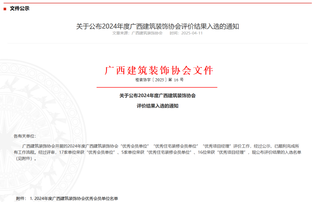 广西太阳成tyc7111cc官网装饰集团自加入广西建筑装饰协会以来,在协会的指导帮助下,深耕装饰领域,实力持续攀升,目前是广西建筑装饰协会的常务副会长单位。未来,太阳成tyc7111cc官网将在主管部门及协会的领导下,与各界同仁一起,共同为推动广西建筑装饰行业健康发展添砖加瓦!