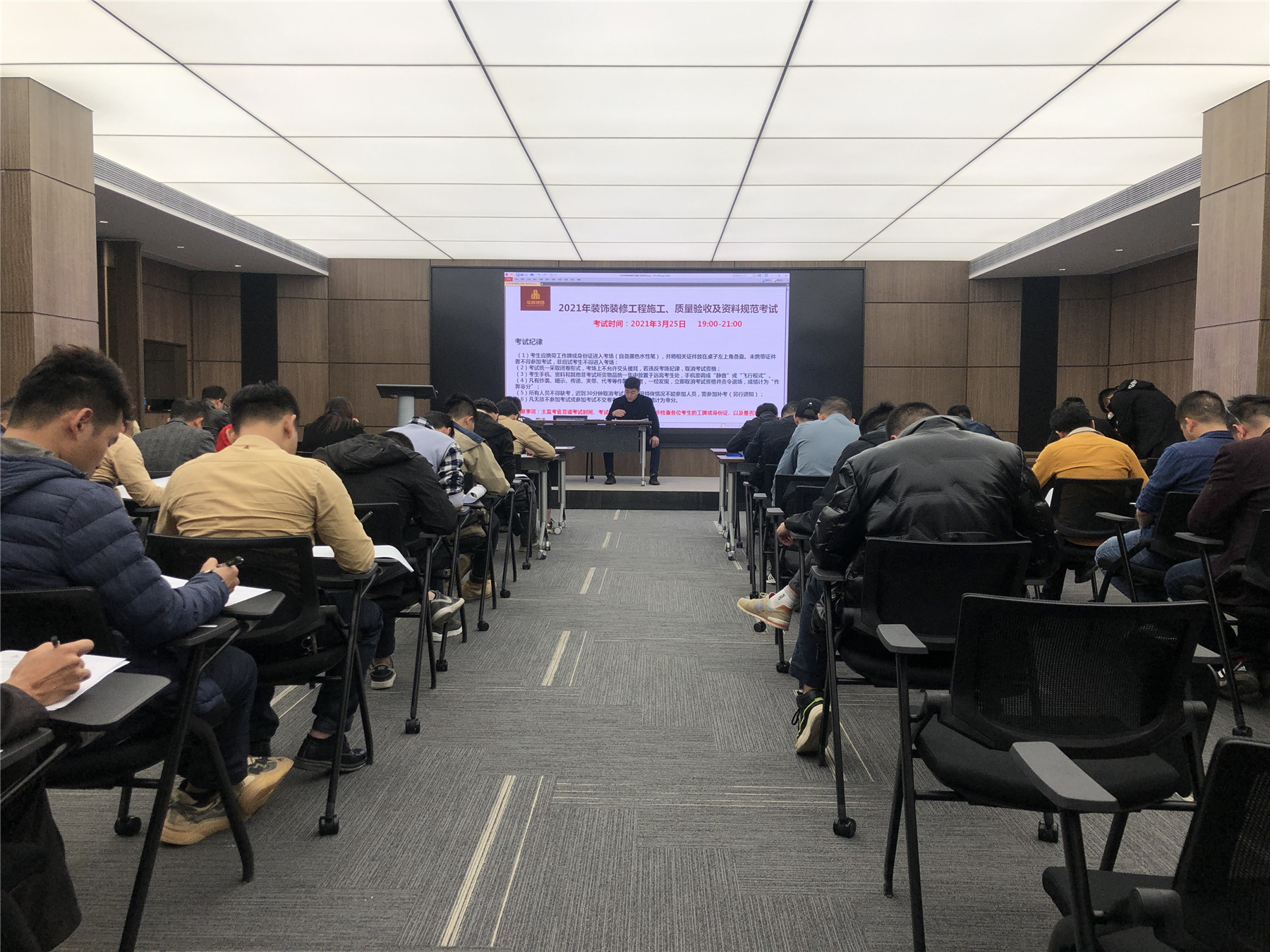 2021年3月25日,太阳成tyc7111cc官网集团开展第二批装饰装修施工、质量验收及资料规范考试,进一步推动集团装饰工程标准化建设,确保项目管理人员深入了解和掌握工程管理标准化要求。